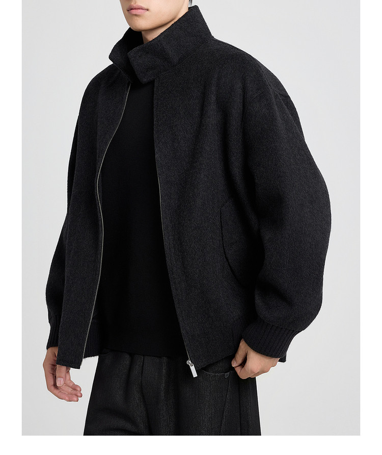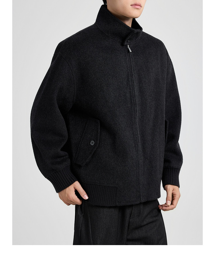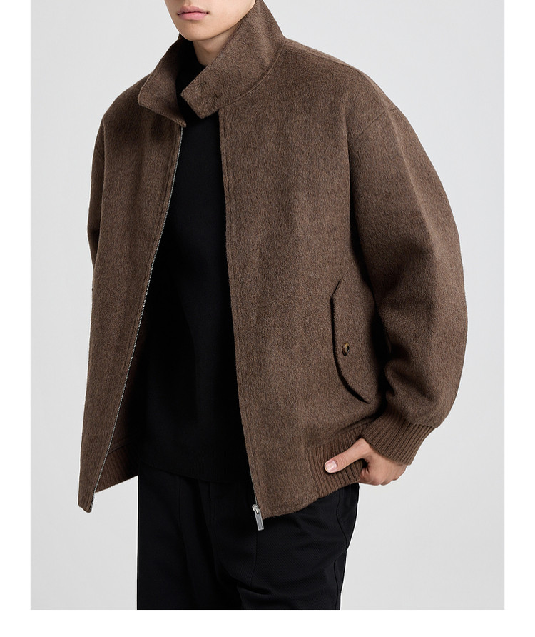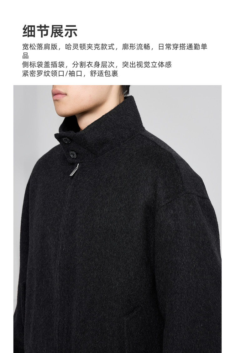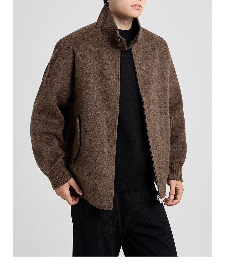 墨麦客男装哈灵顿立领毛呢外套男士2025秋季新款美利奴羊毛夹克男