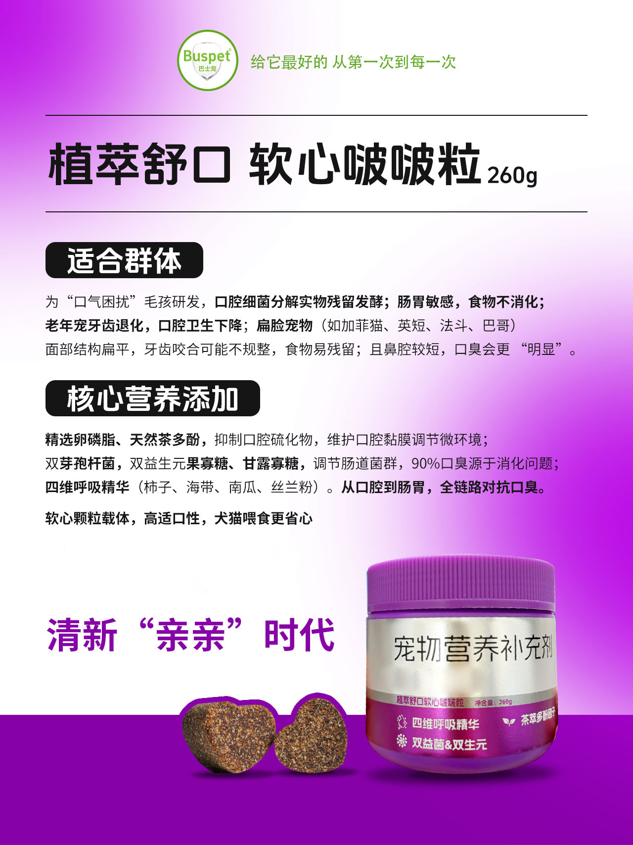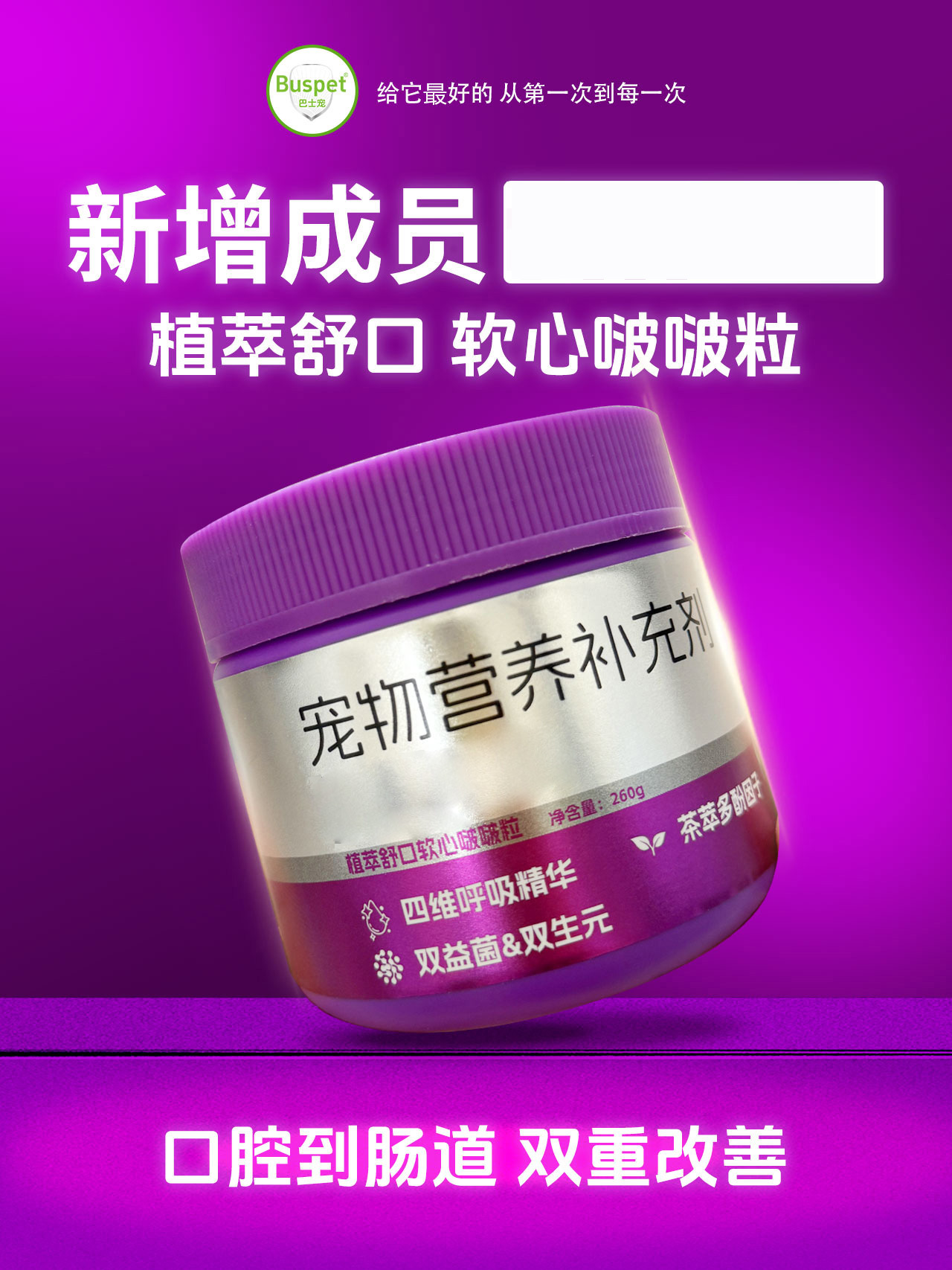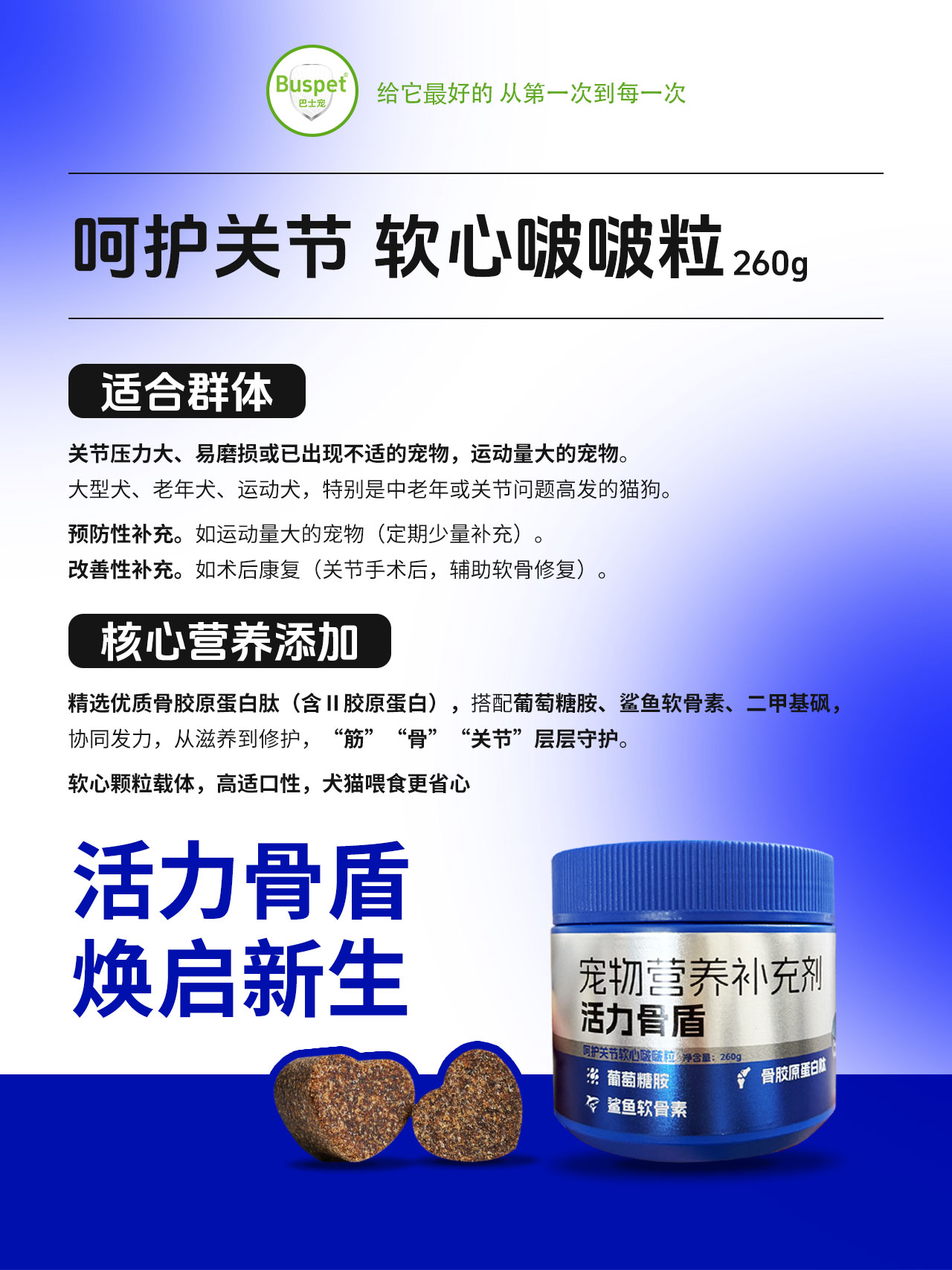 巴士宠软心啵啵粒260g 宠物保健品 活力骨盾 线下专供 乱价包退 整箱=50盒【5送2,10送5】