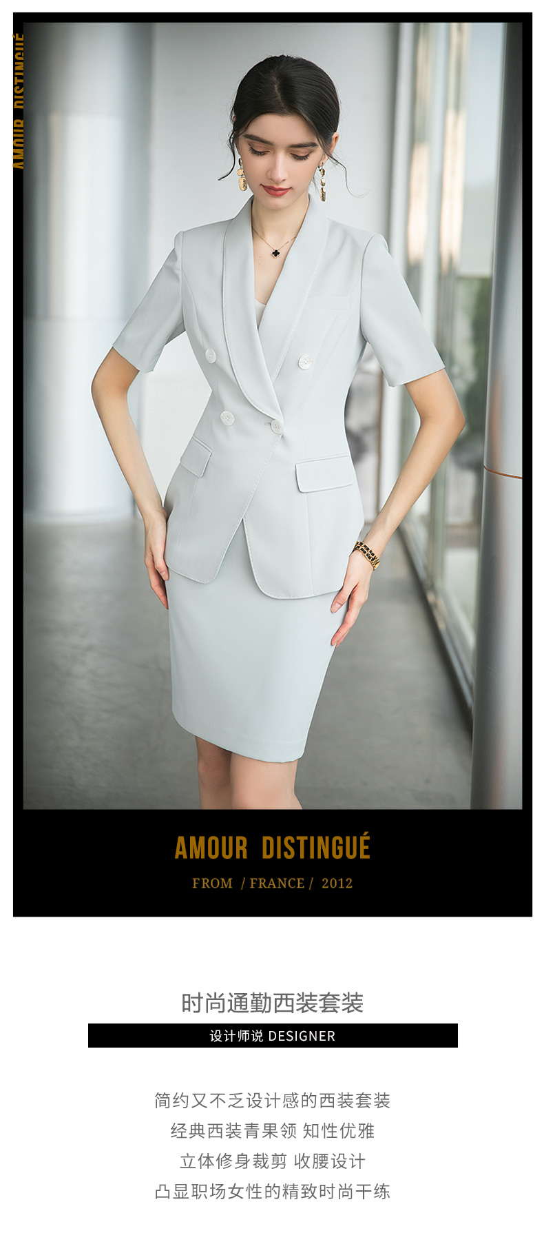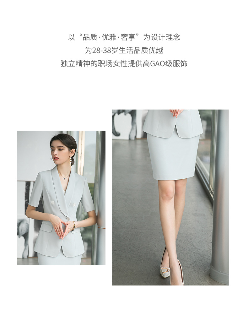 IWY/浅蓝色西装外套女夏季空姐职业套装女短袖气质前台接待工作服 CS1540