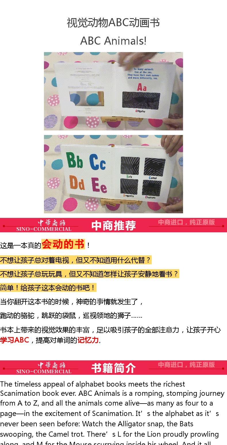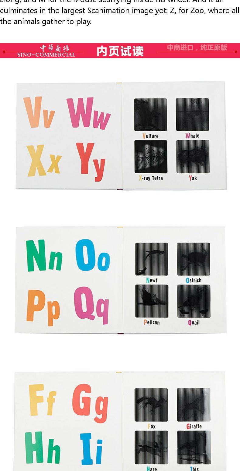 【中商原版】视觉书 动物ABC ABC Animals A Scanimation Picture Book 视觉动物动画书 英文原版 会动的书 趣味ABC认知童书