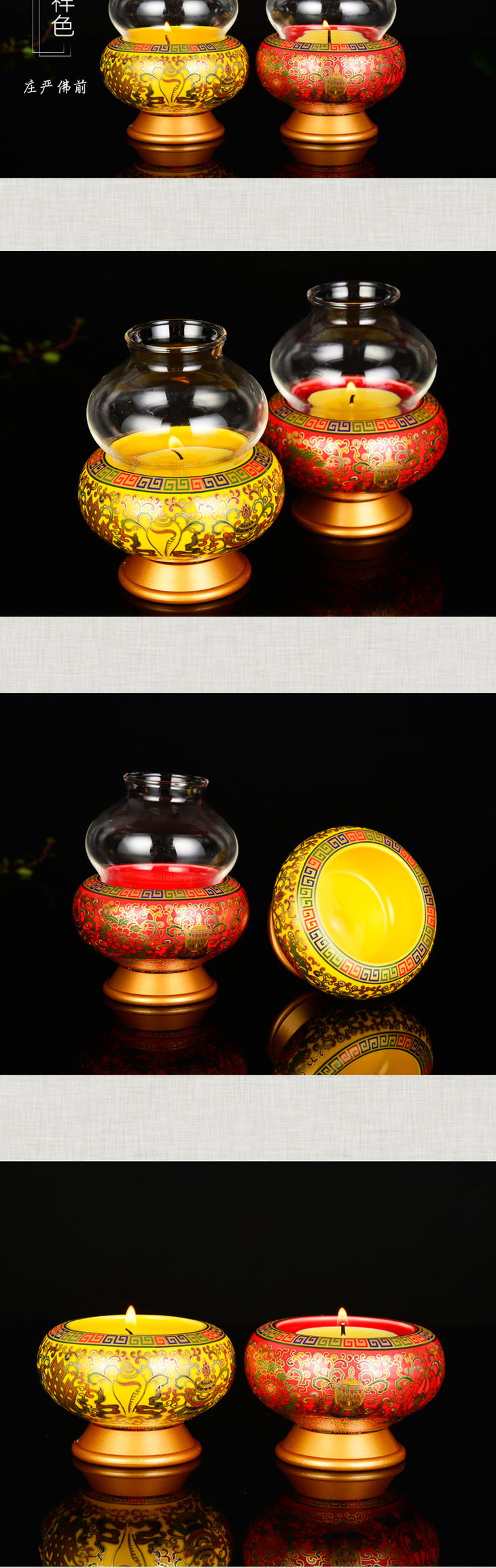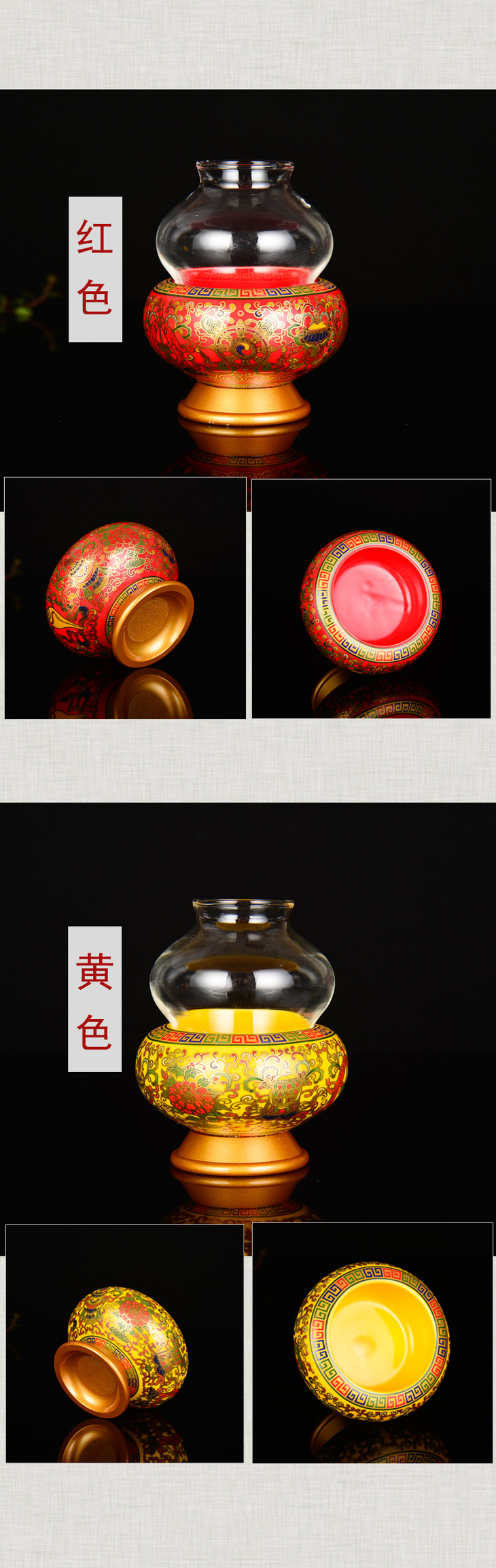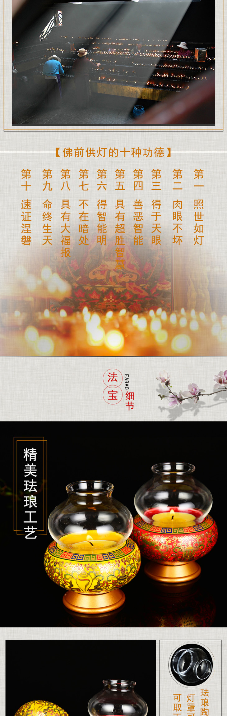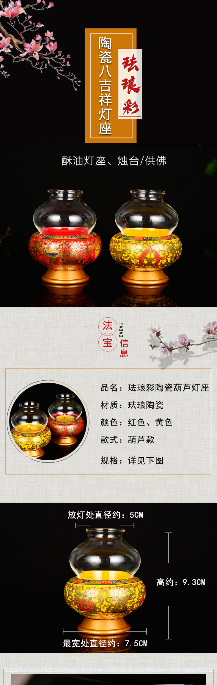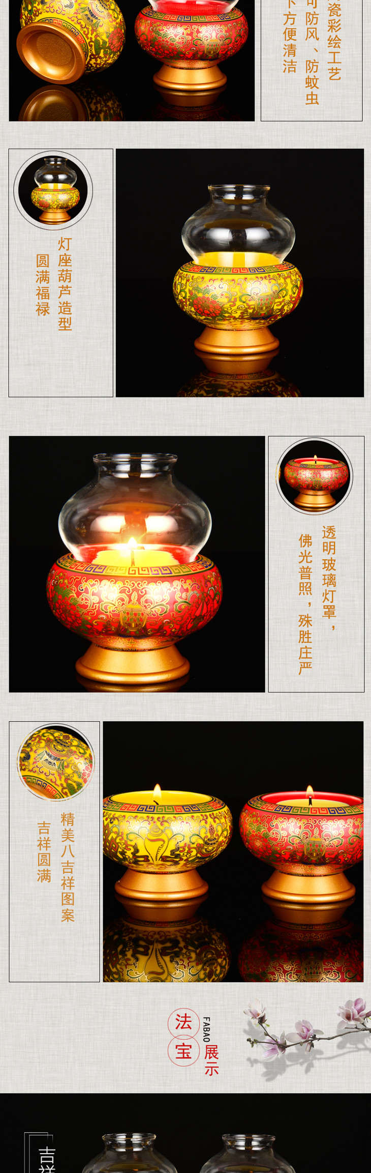 珐琅瓷葫芦酥油灯灯座八吉祥家用室内佛前供佛适合2小时 4小时 8小时酥油灯