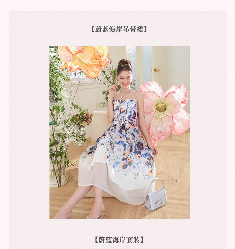 BeQueenStory 【夏梦繁花】优雅收腰吊带连衣裙&套装2023夏季新款