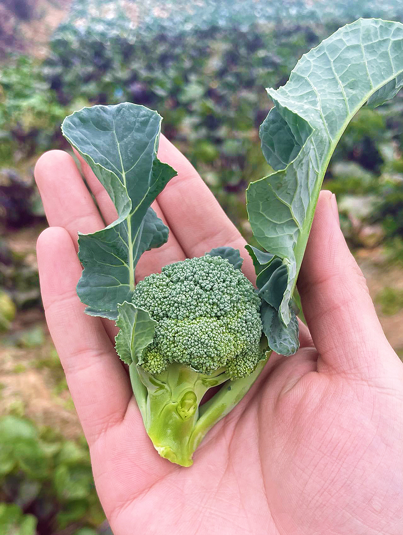西蓝花经过菜农严格筛选,去除坏株、病株,保证每一颗小花苞都紧凑成团。