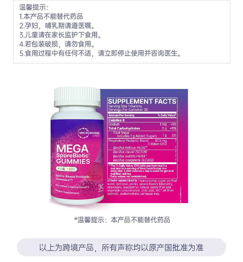 MicrobiomeLabs儿童孢子益生菌软糖 30粒/瓶