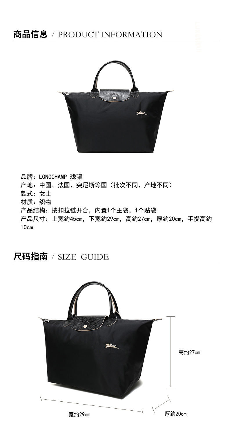 Longchamp/珑骧 女士LEPLIAGE系列织物中号短柄可折叠手提包 1623 619