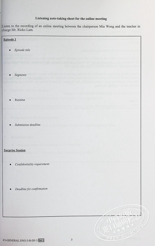 本产品是初中English英文科适用的Original Mock的Original Mock for Able Students - English Listening F3