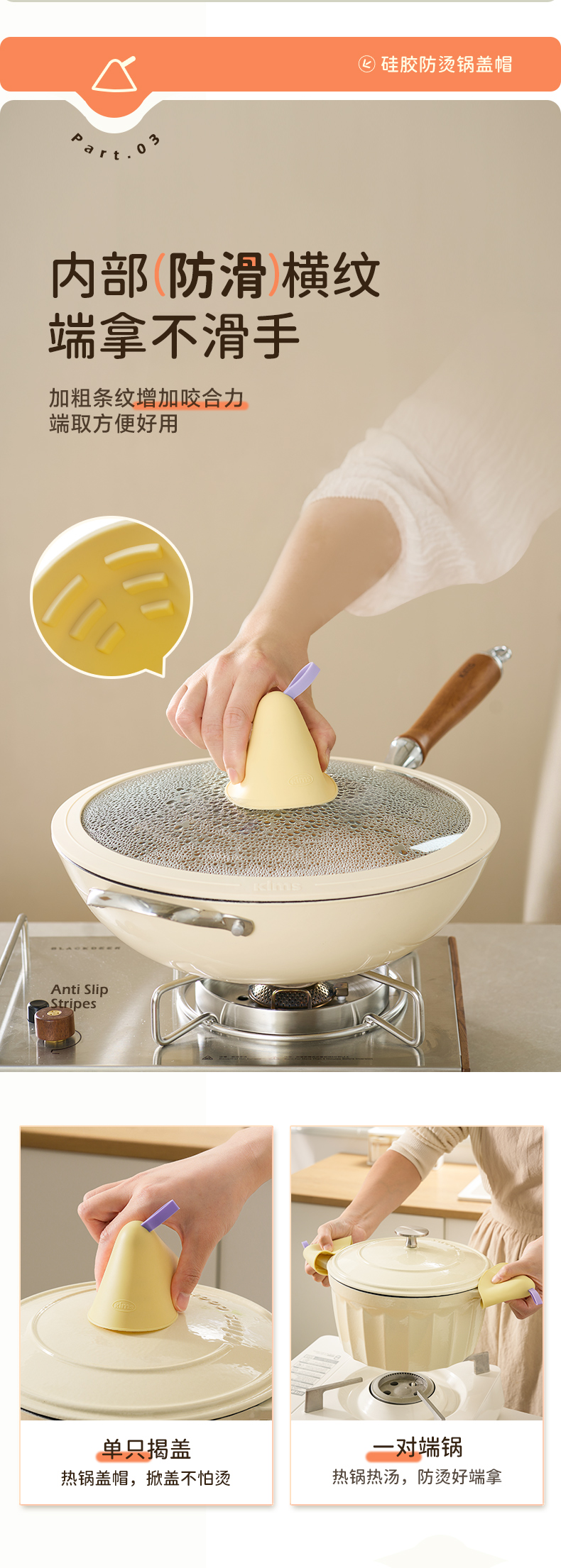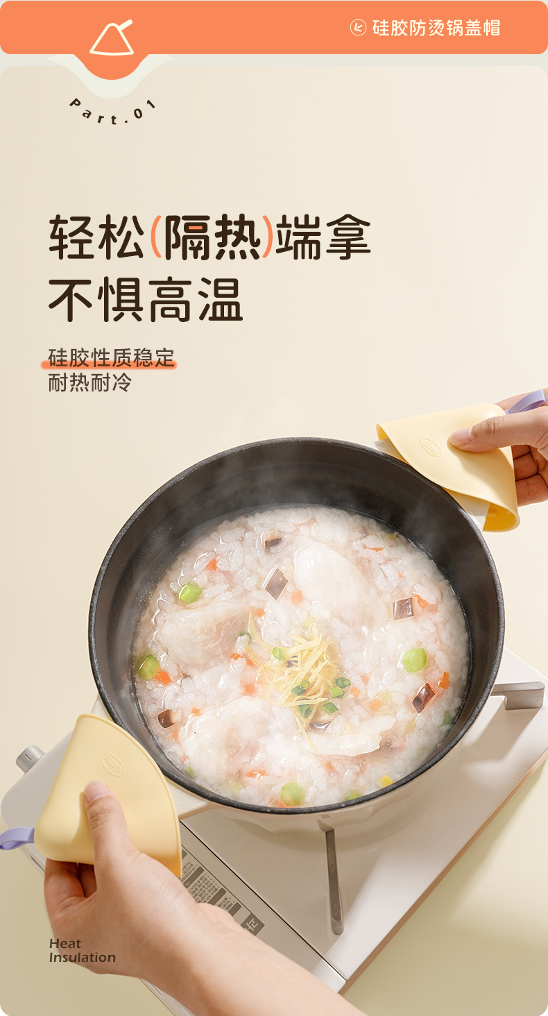 kimscook硅胶防烫帽锅盖锅把手隔热手套耐高温砂锅珐琅锅防烫夹