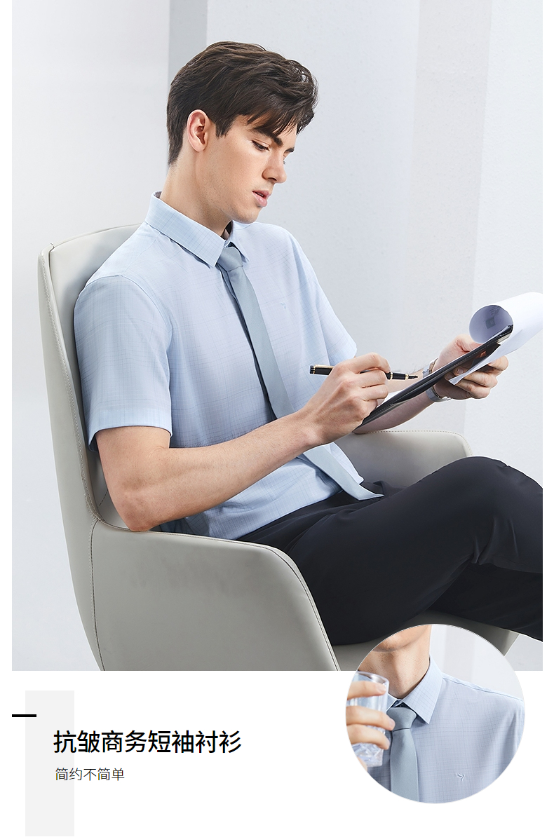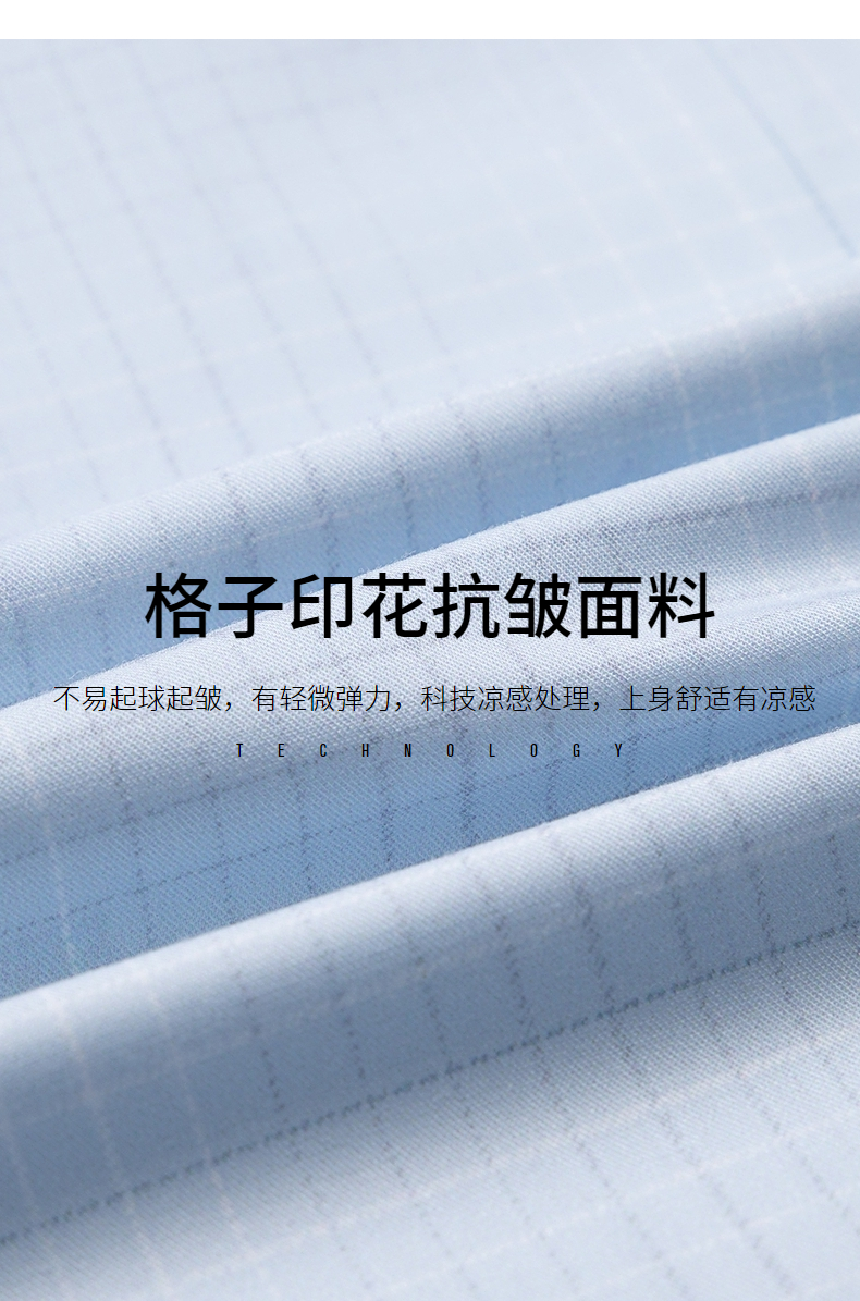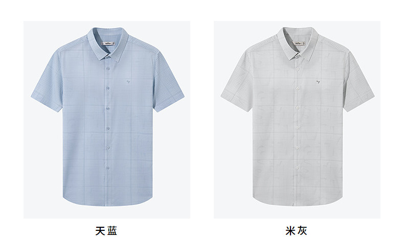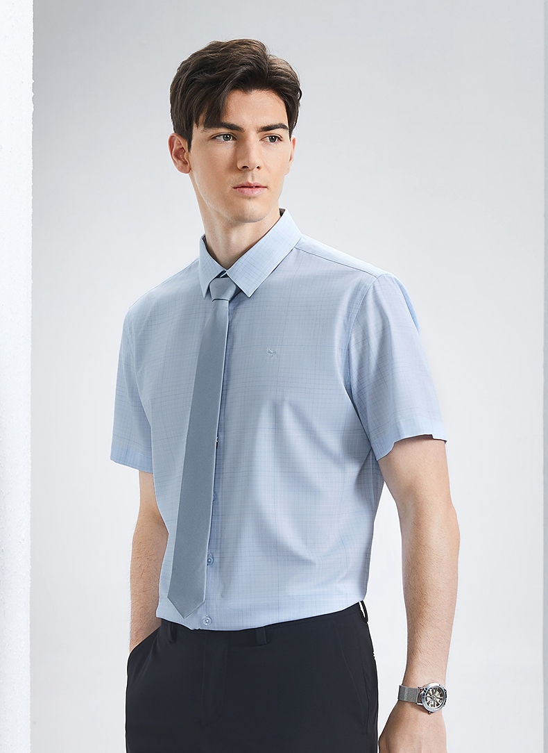 【瞬间凉感】柒牌抗皱短袖衬衫男士夏季新款时尚格子印花翻领衬衣 126A70380