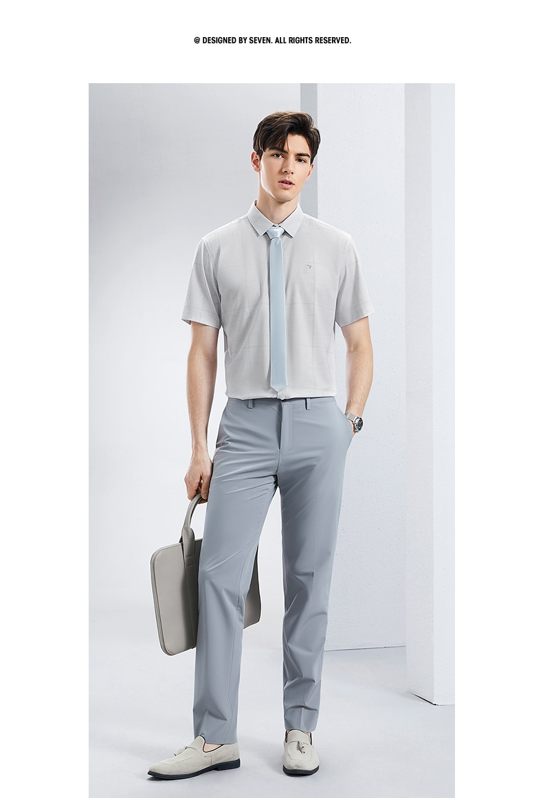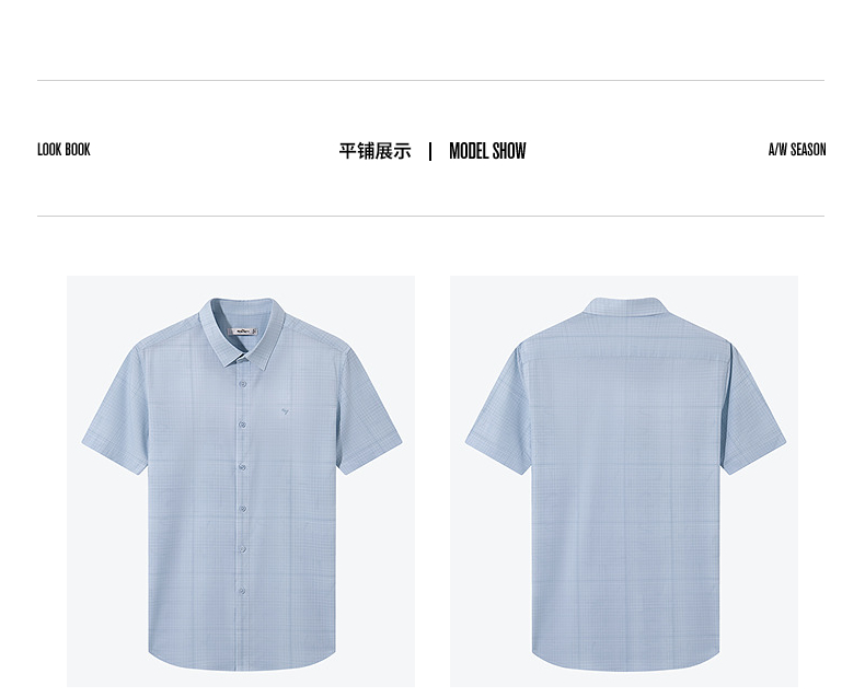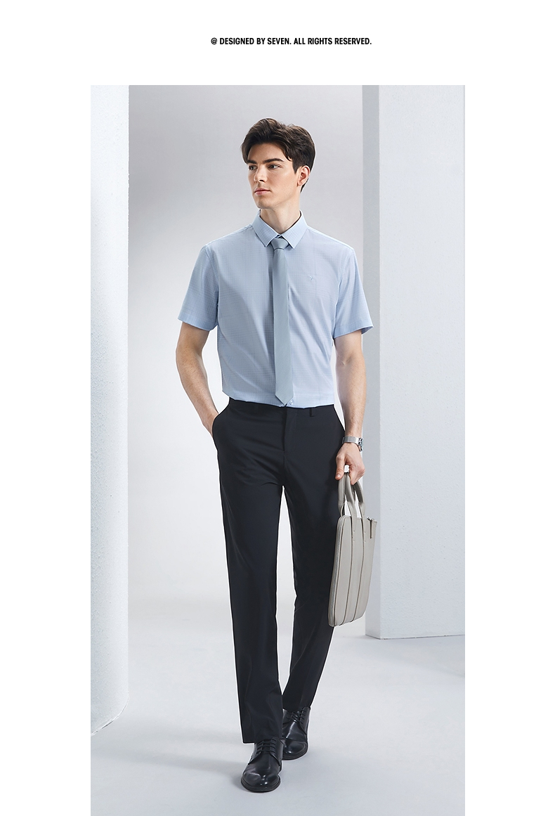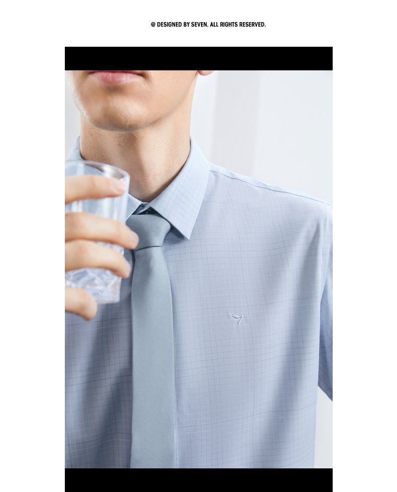 【瞬间凉感】柒牌抗皱短袖衬衫男士夏季新款时尚格子印花翻领衬衣 126A70380