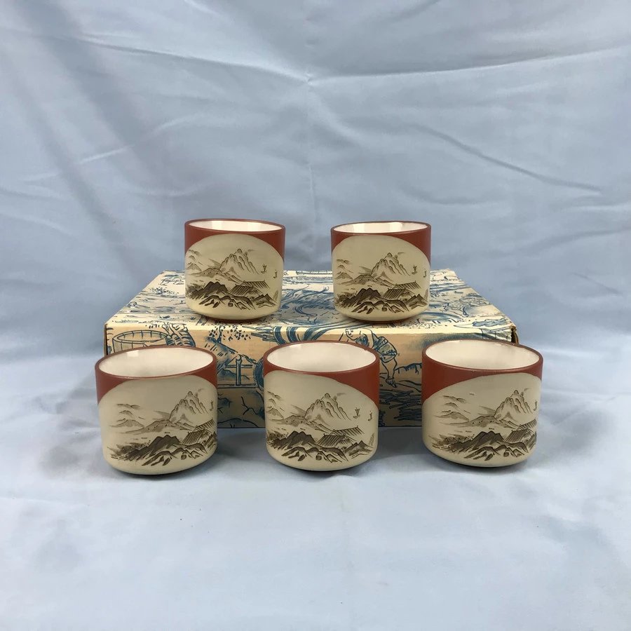 日本吉向烧吉向山庄作山水画茶杯 5枚装 原盒保留 实物见视频尺寸:口径6.5cm,高6.2cm重量:每个0.13kg产地:日本