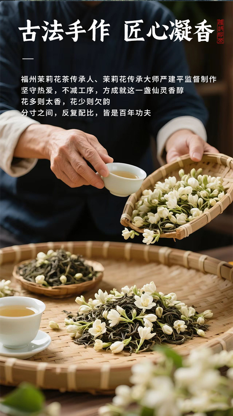 【茉莉飘雪】6窨口粮茉莉花茶 茶韵天成 香沁心扉 60g*6包