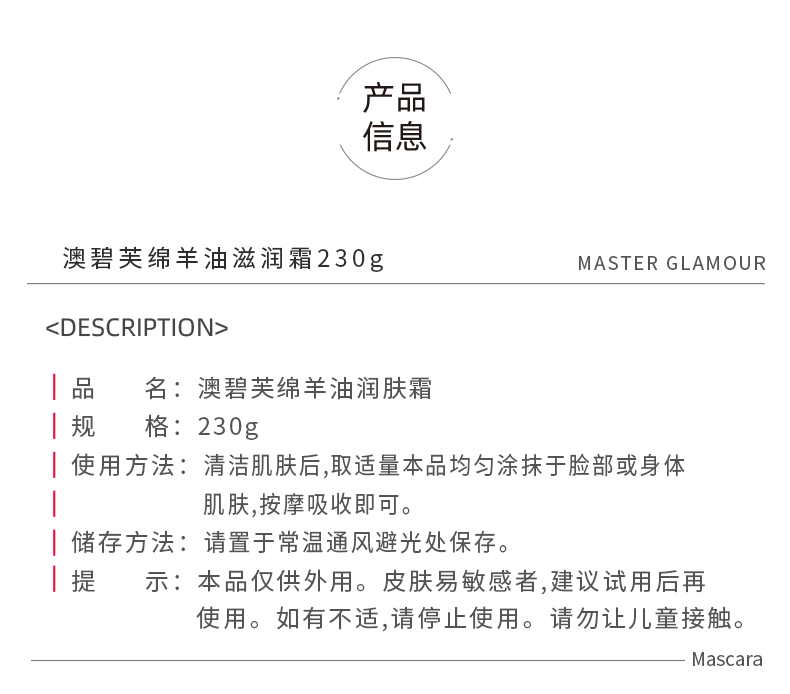 澳碧芙绵羊油滋润霜230g(250580)