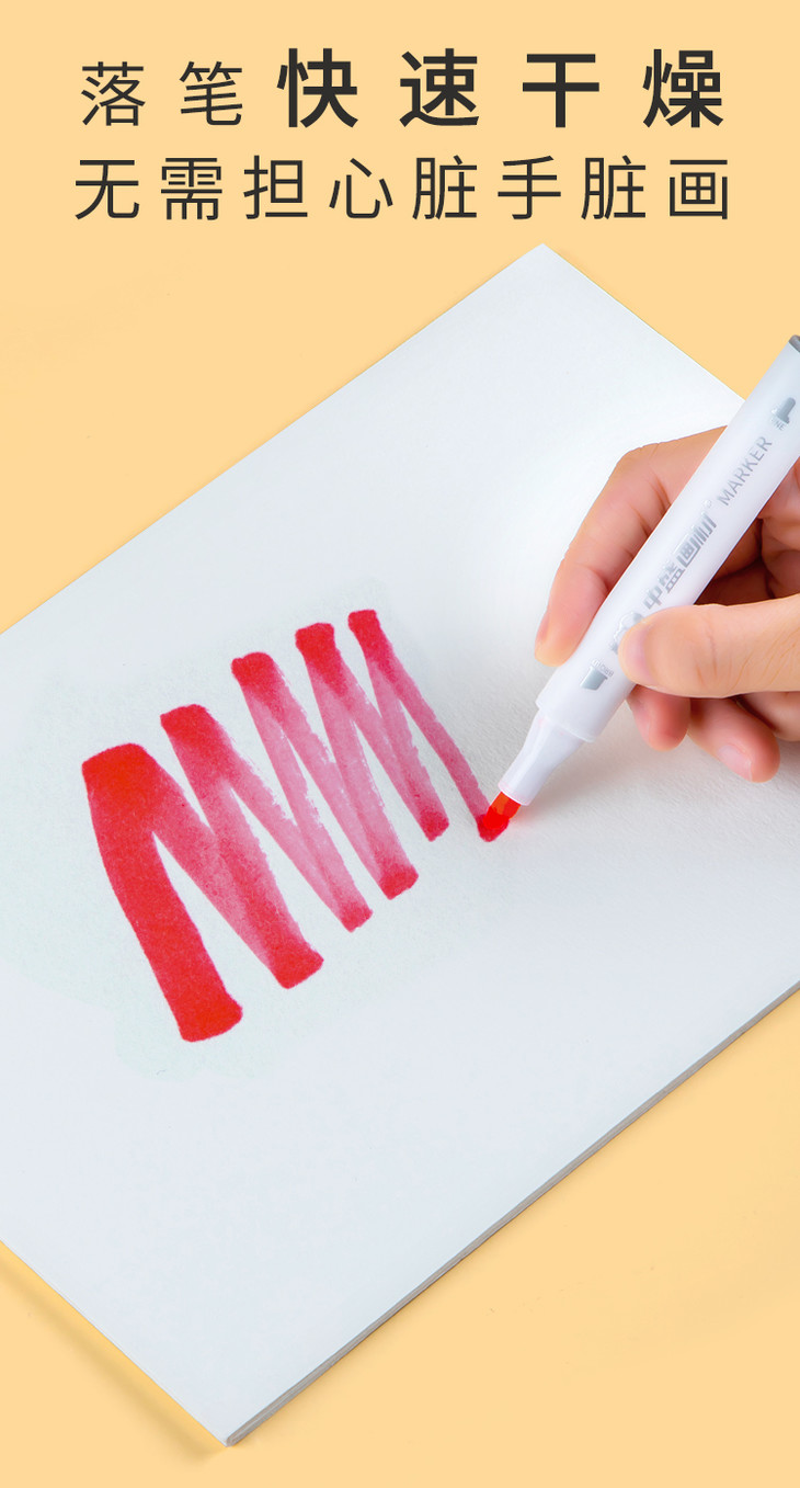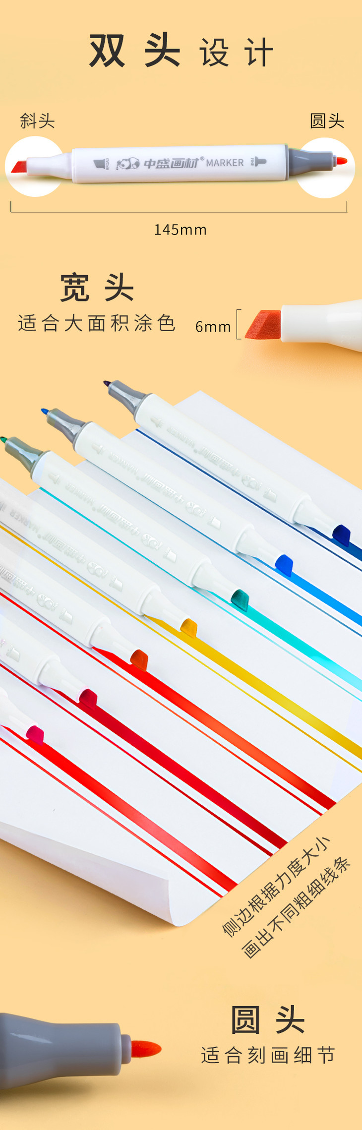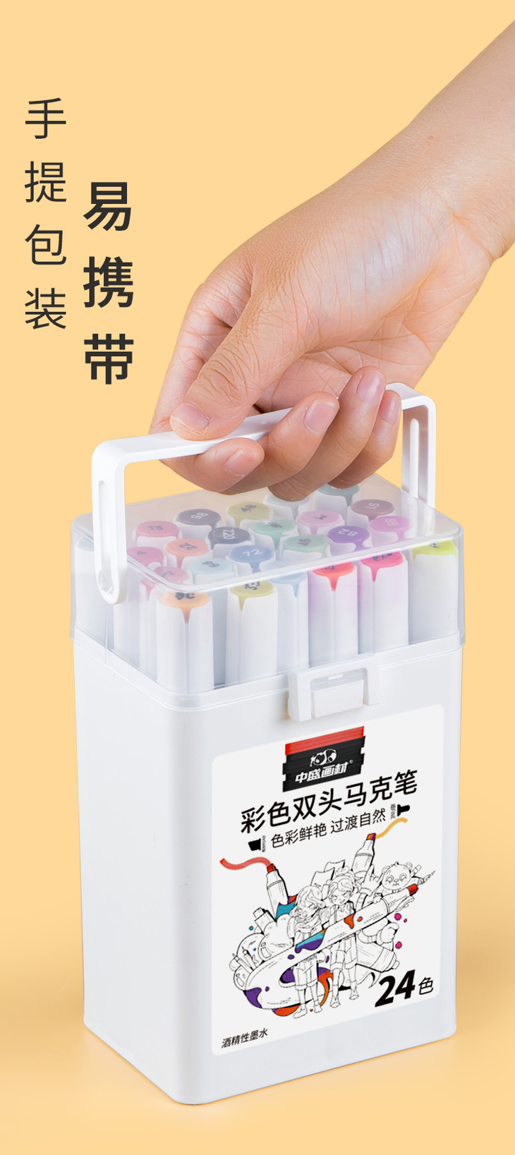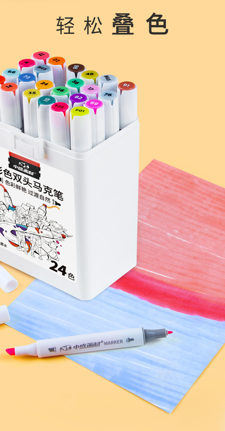 中盛画材双头马克笔手绘笔学生水彩笔马克笔24色儿童水彩笔动漫彩笔美术生专用马克笔24/48/60色全套