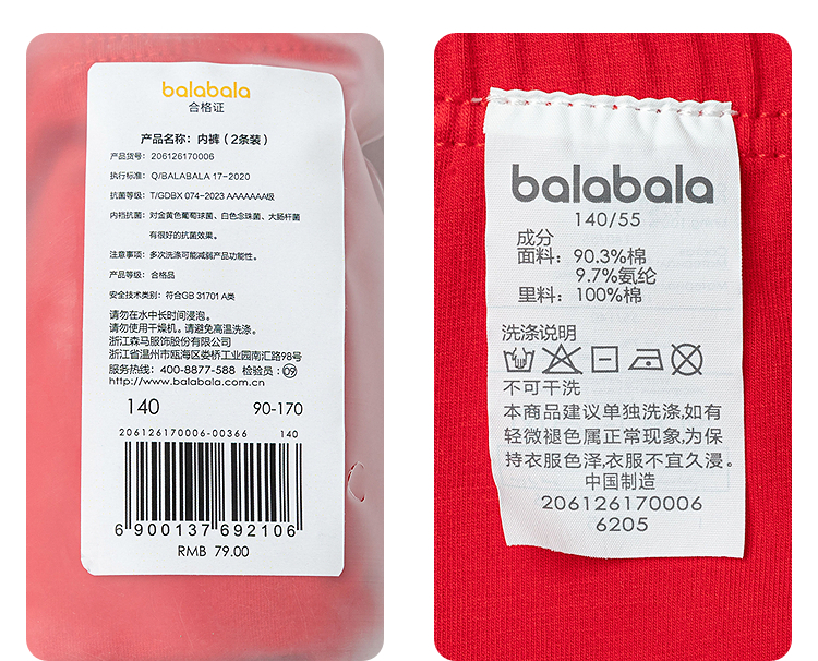 【商场同款】巴拉巴拉儿童内裤平角棉女童短裤四角裤不夹PP两条装