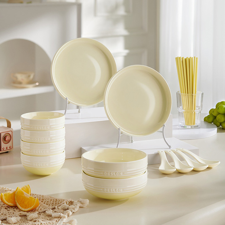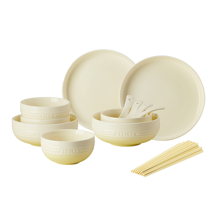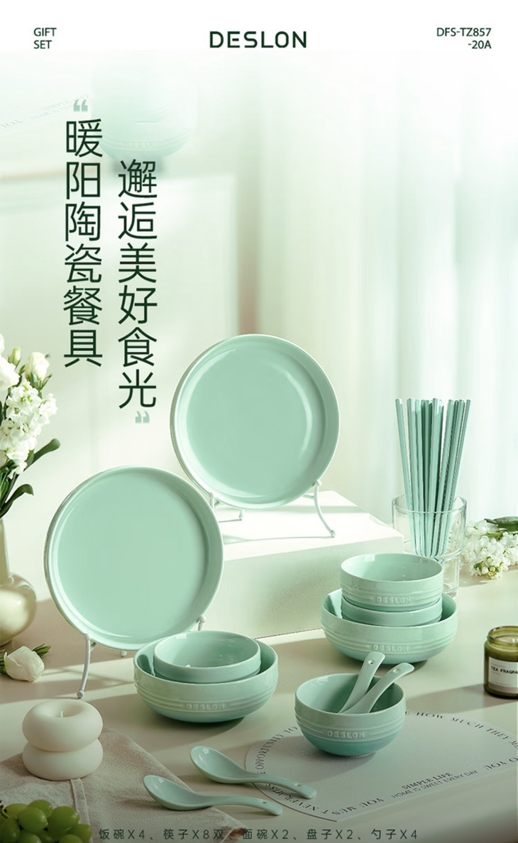 🌈被问爆的【德世朗DFS-TZ857-20A暖阳系列陶瓷餐具二十件套】😍快来拿下全家够用的健康瓷具 ✨釉下彩工艺,👏不掉色、不脱落