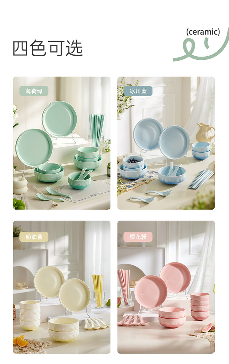 【规格】饭碗*4、面碗*2、盘子*2、勺子*4、筷子*8双