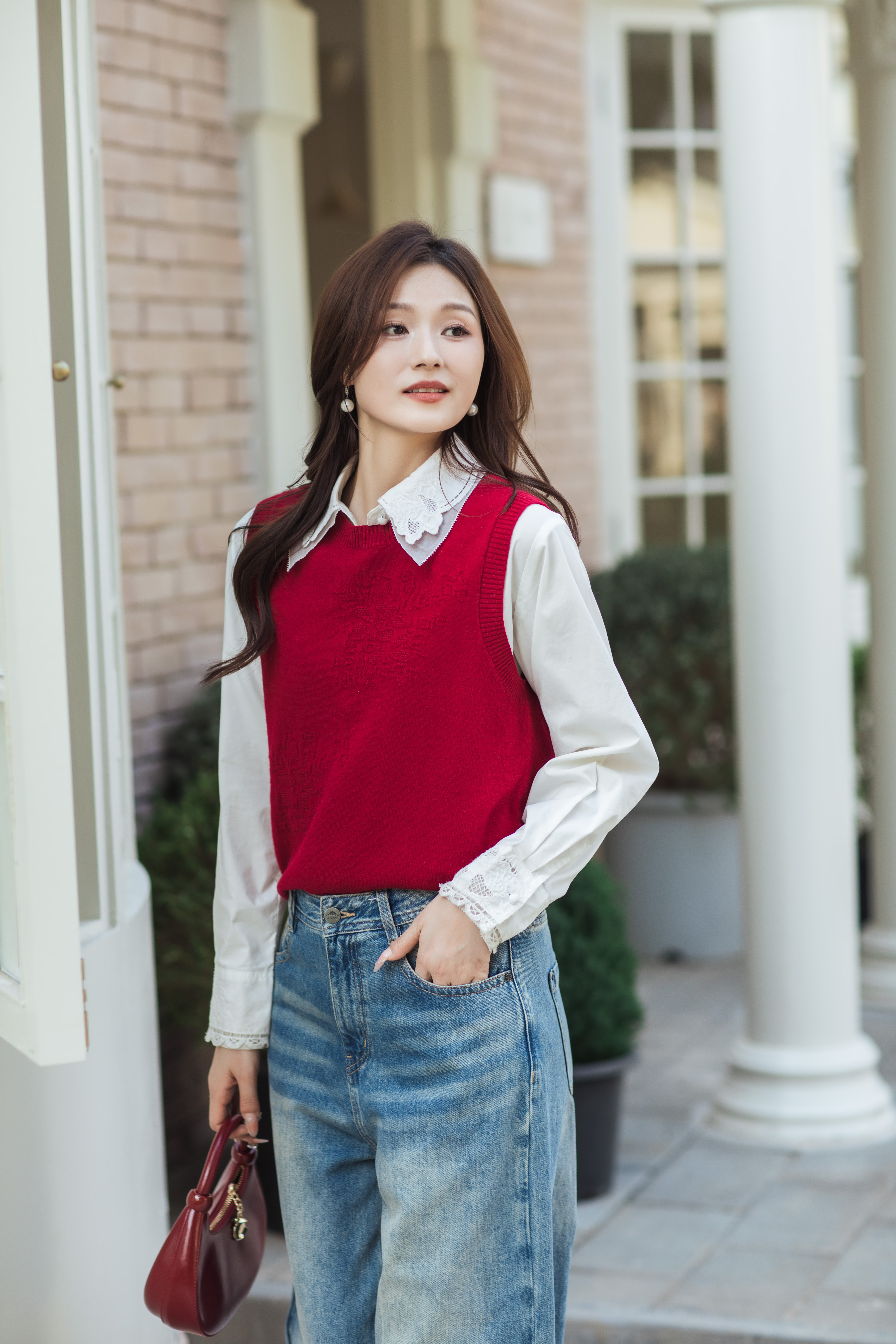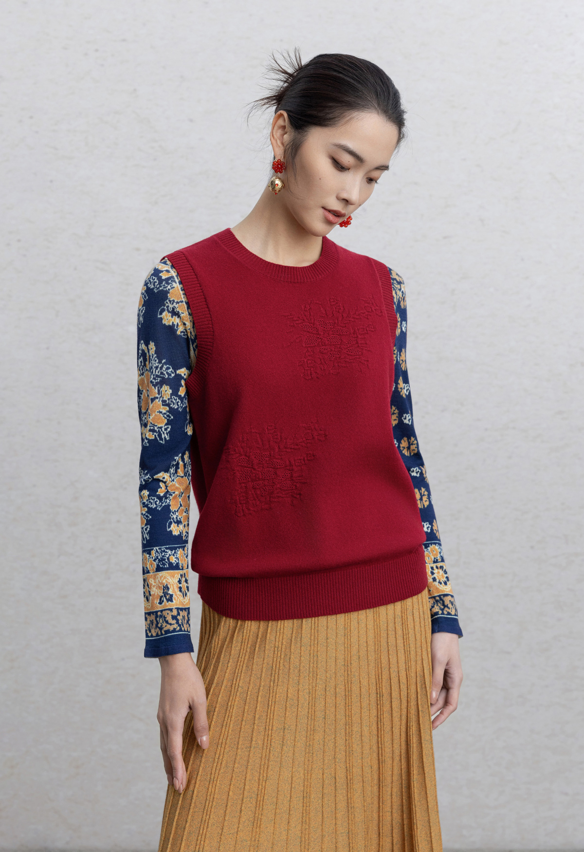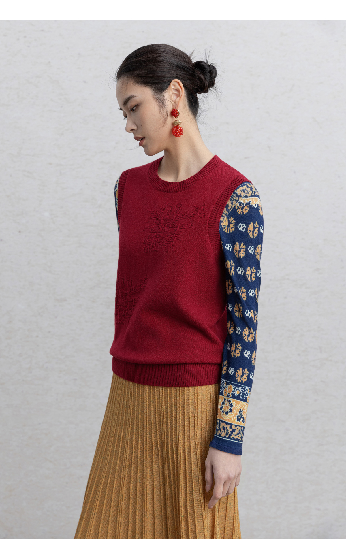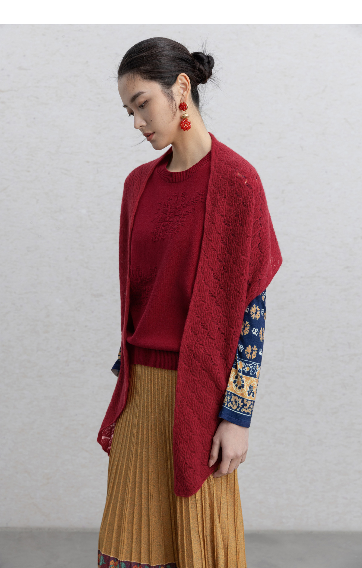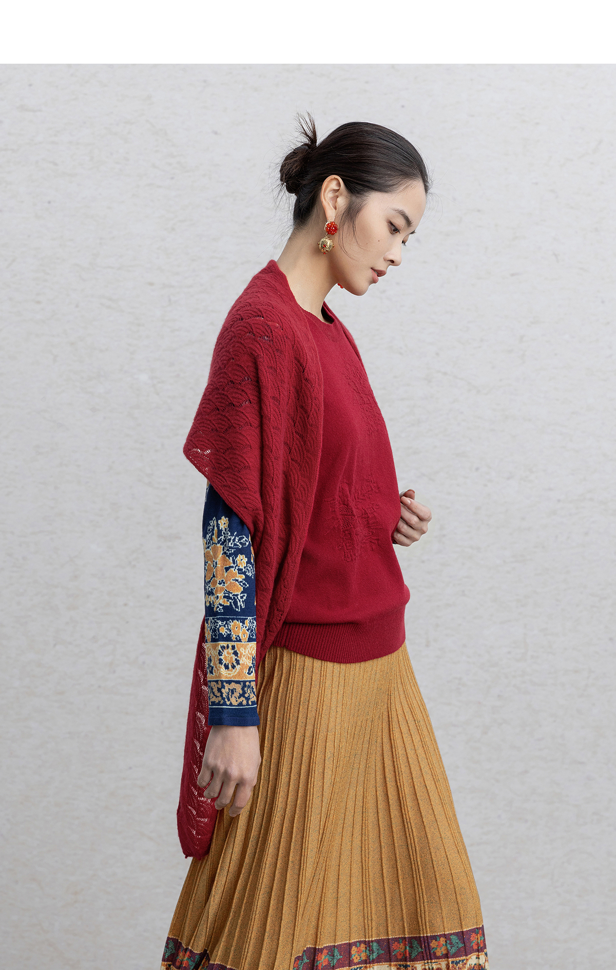 【林栖设计小店】红启新岁|绵羊毛优雅多色百搭宽松2026春新款毛织上衣G1961386