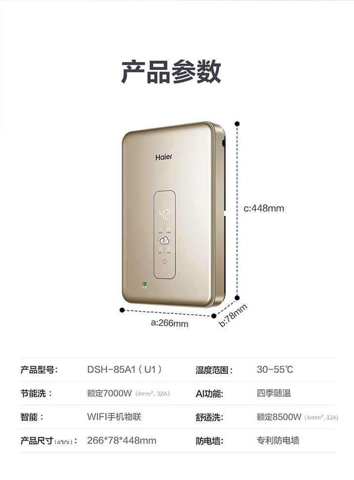 海尔(Haier)电热水器DSH-85A1(U1)即热式