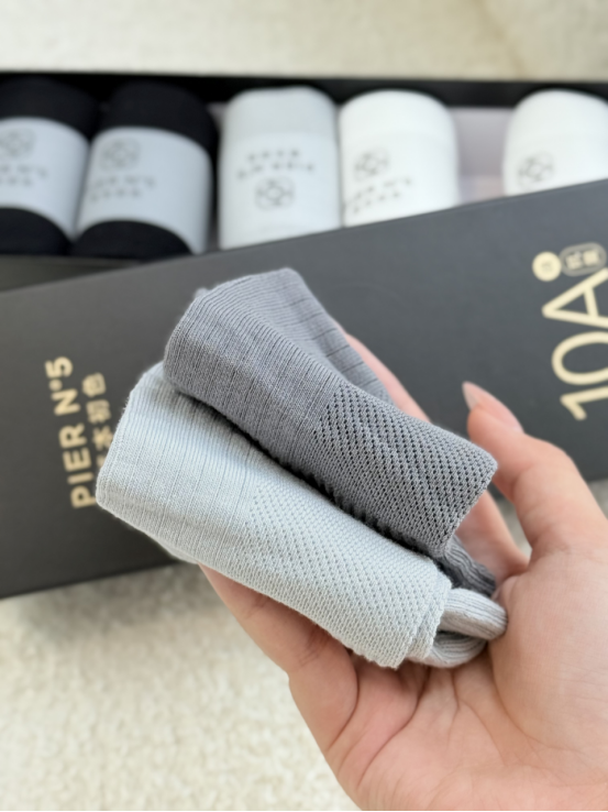 纯纯高品质袜子,整体做工精细,弹力适宜 不易脱落,袜口不勒脚脖,不易起毛絮 双脚不会有闷热和黏腻感,轻松告别异味尴尬!!