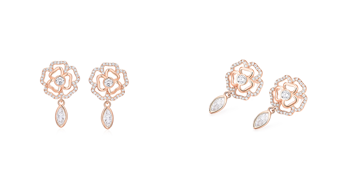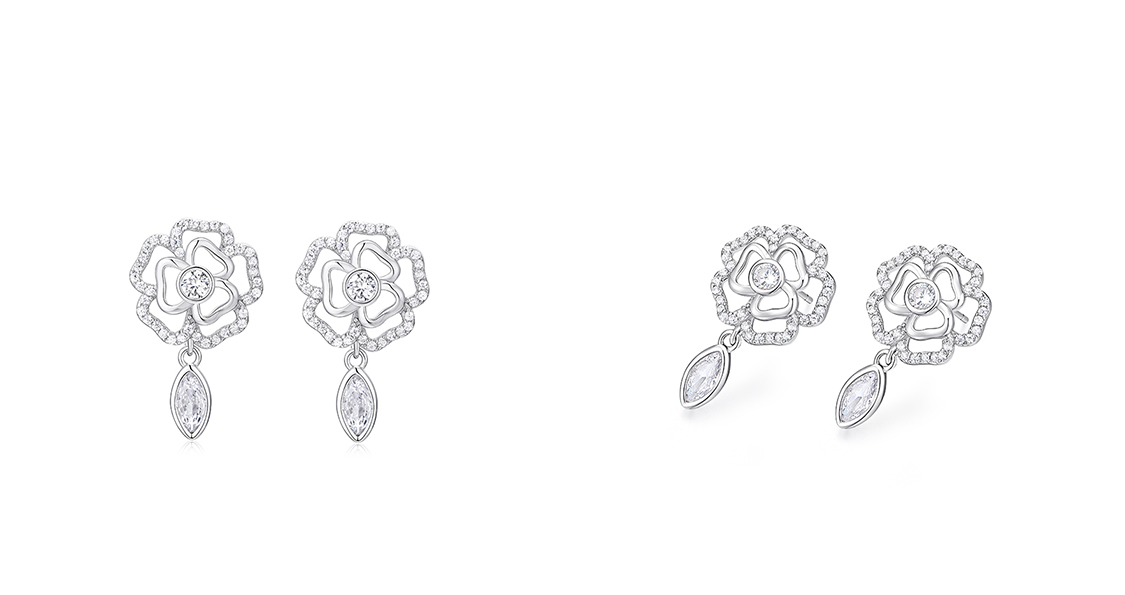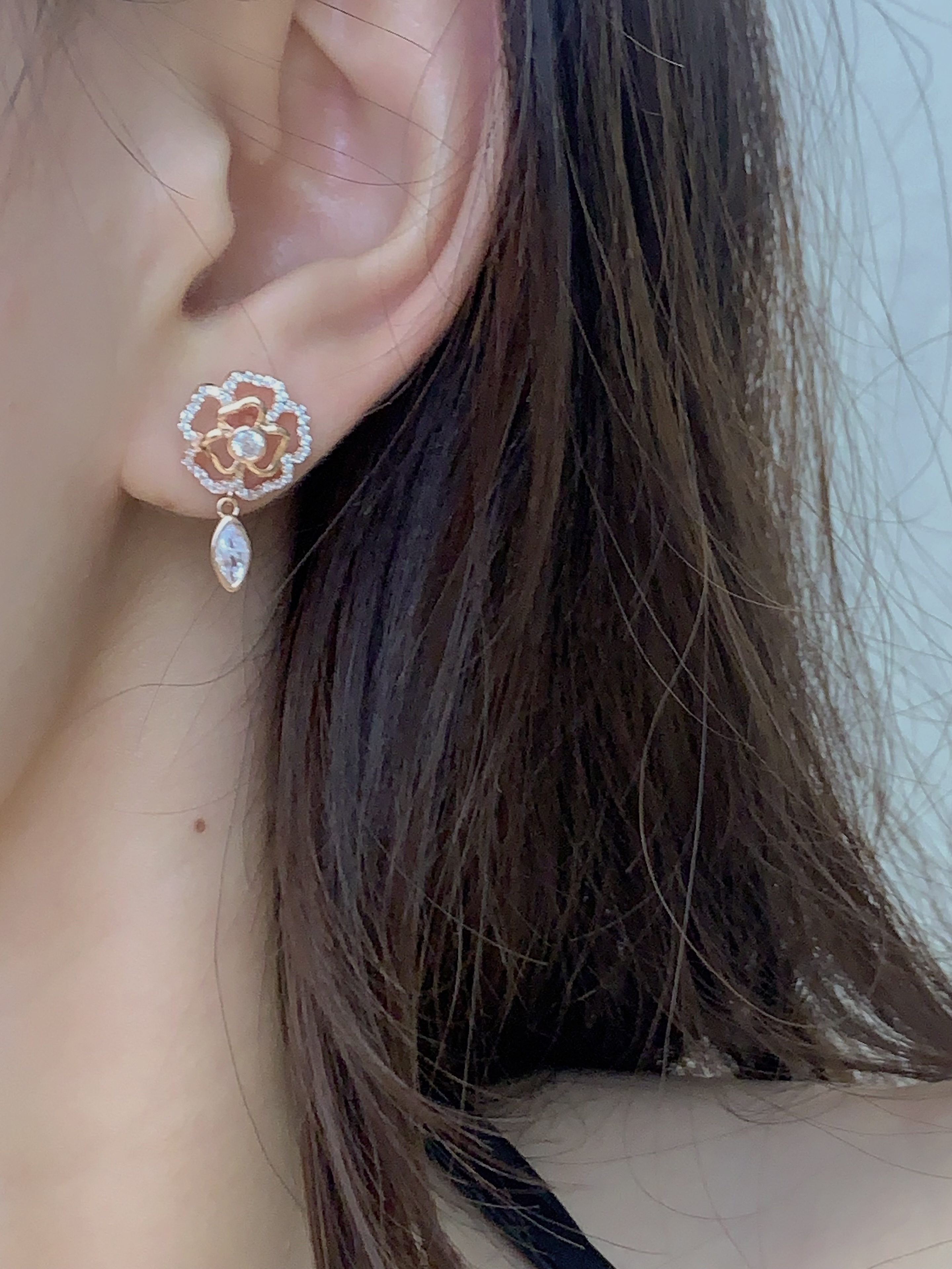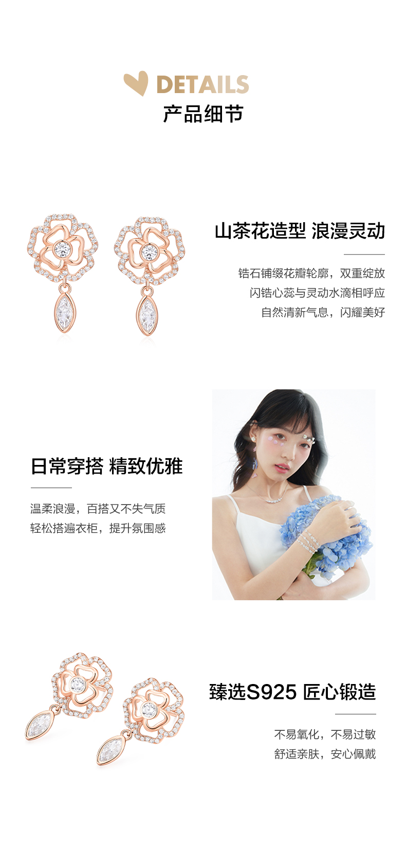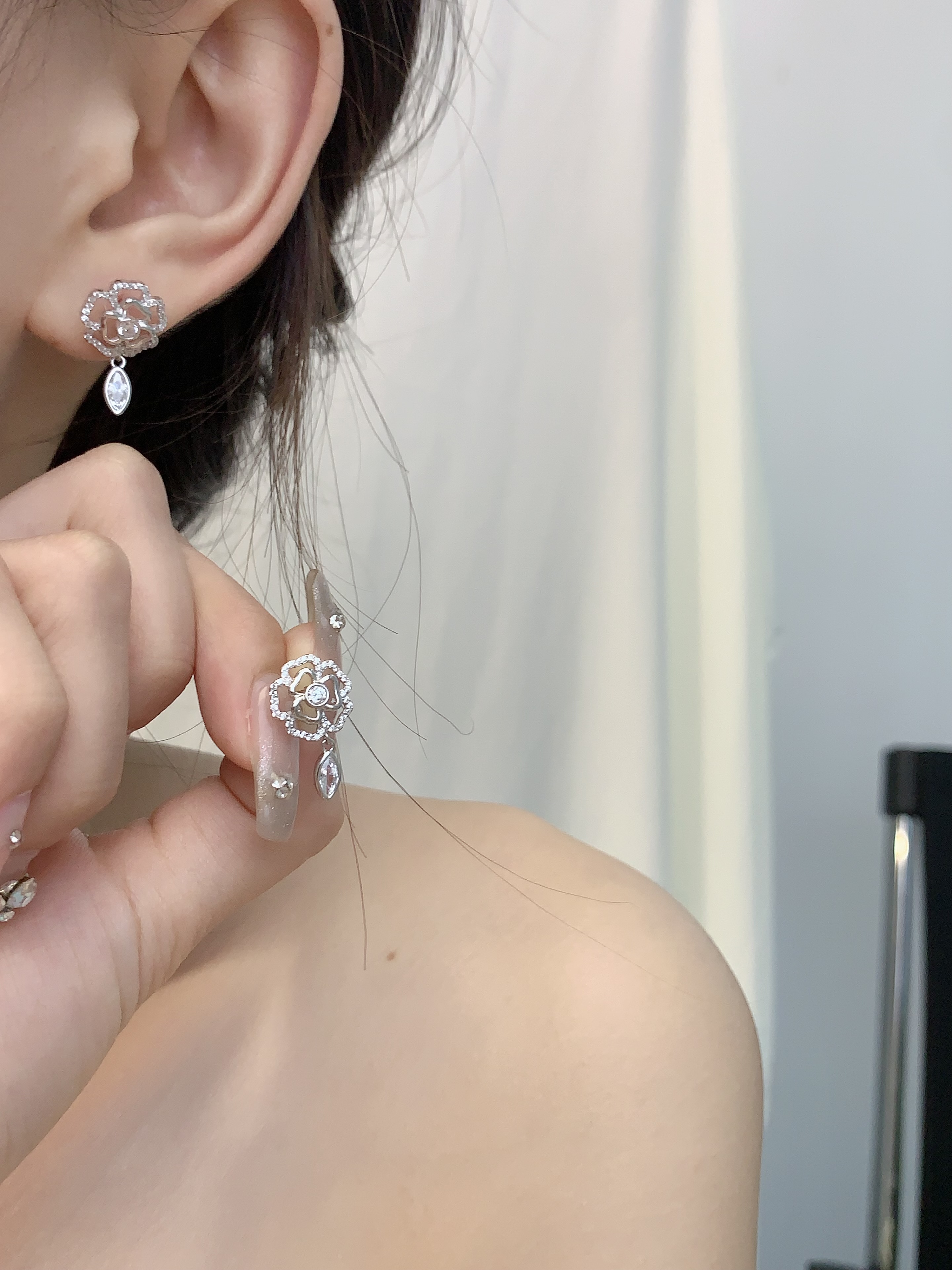 KADER卡蒂罗 山茶花耳钉 星空银 925银清新灵动花朵造型设计冬日闪耀耳饰 浪漫优雅精致闪耀配饰 礼盒装