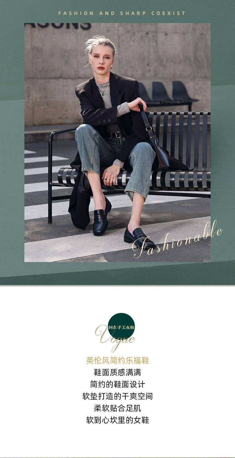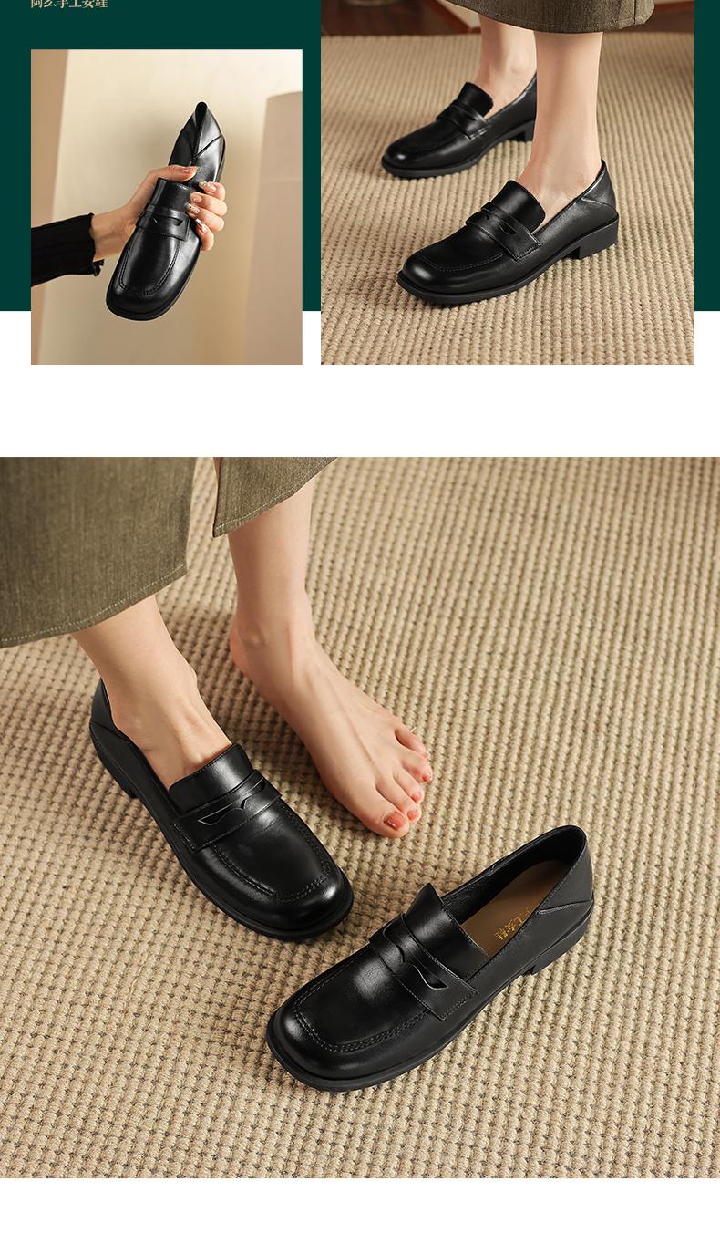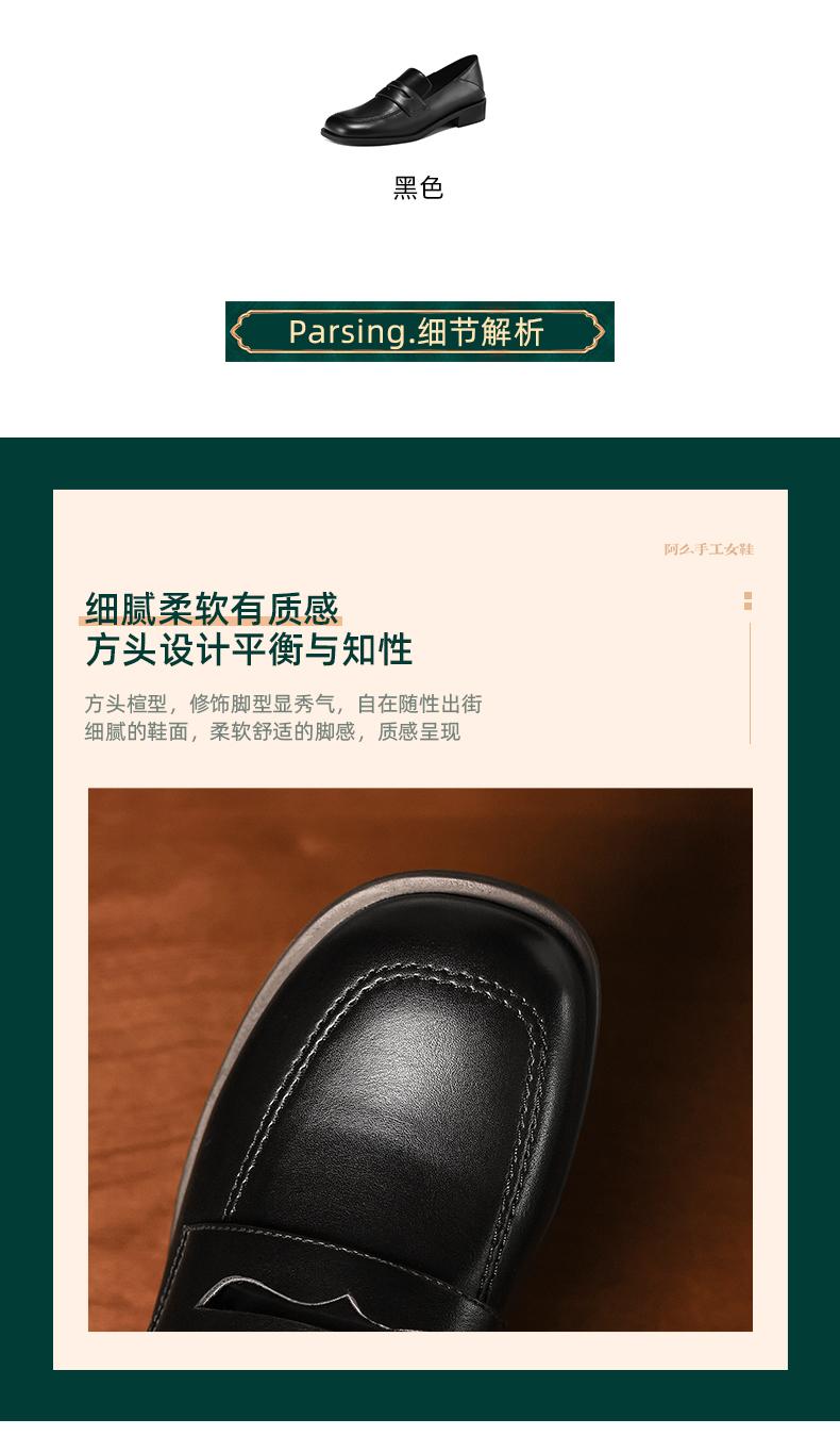 阿么手工女鞋2025新款圆头乐福鞋3CM百搭英伦风时尚小皮鞋女软底