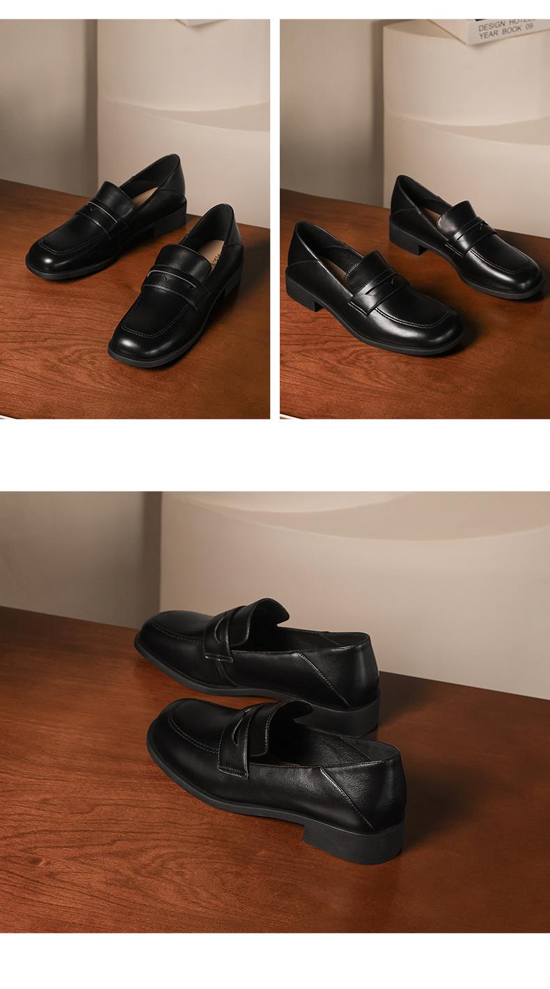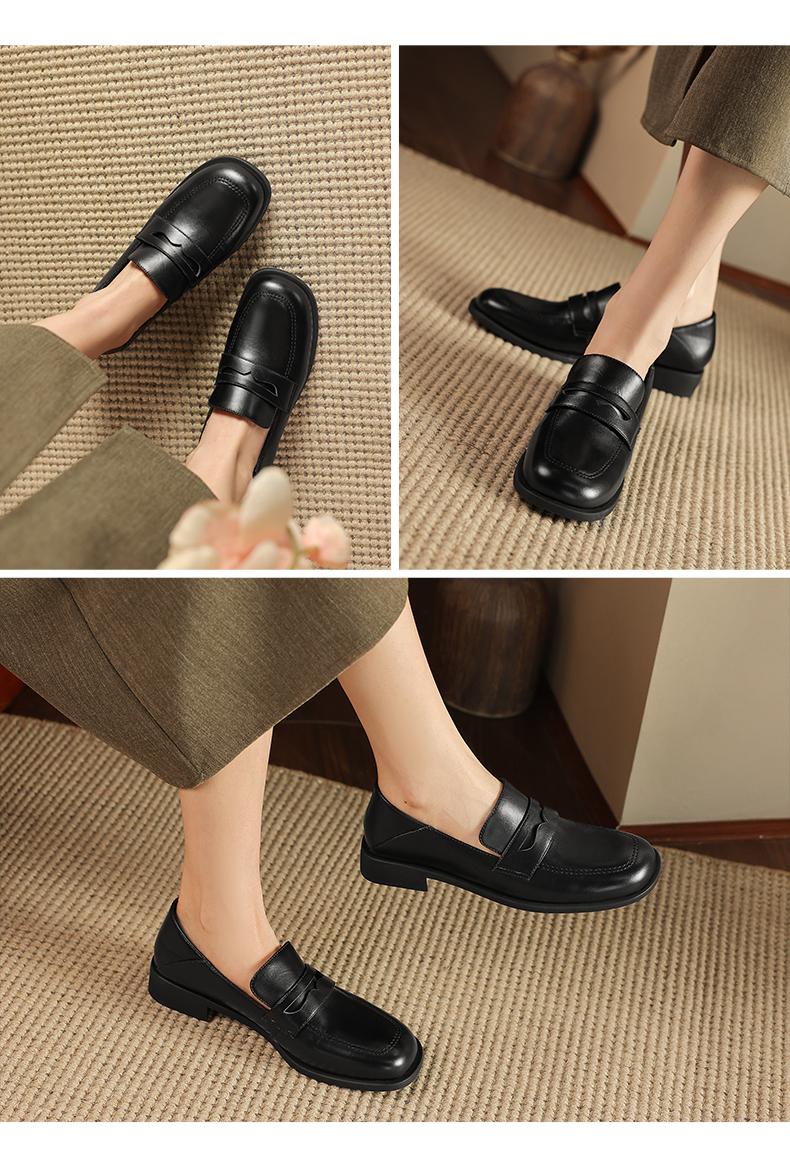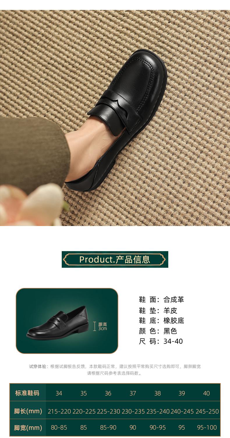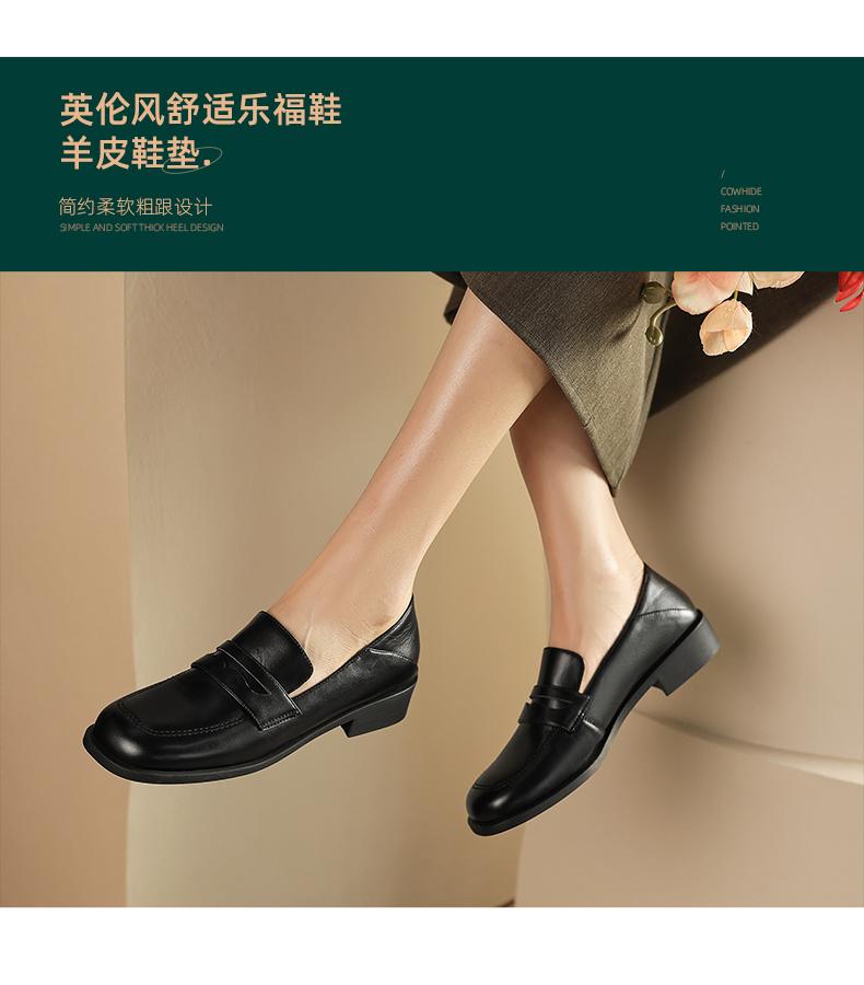 阿么手工女鞋2025新款圆头乐福鞋3CM百搭英伦风时尚小皮鞋女软底
