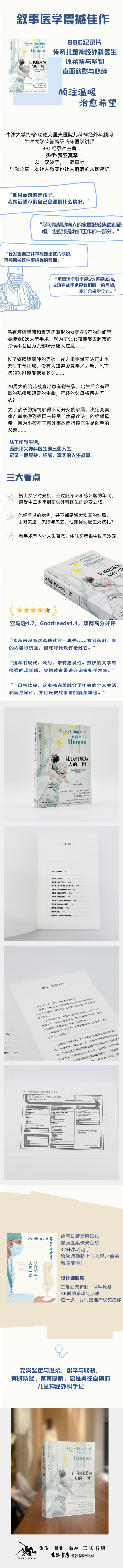 ★ 亚马逊4.7分好评,BBC传奇儿童神经外科医生的动情讲述寄予希望的病房故事 ★ 酸楚、心碎、有趣、深刻、无所畏惧的执业回忆录 ★ 疾病面前人人平等,温柔感动伴随令人叹谓的生命反思 ★ 节奏轻快,小巧开本,给你通勤路上和入睡之前的温暖陪伴 【编辑推荐】 ★ 观察手术台上的人间百态,发现被隐秘的人间温暖 ★ 从医患矛盾到温暖联结,医生如此关爱病人、关心家属 ★ 他是一位外科医生,更是一个与你我一样认真生活的普通人 【媒体推荐】 “这是一本由一个真正杰出的人写出的充满启发的作品。” ——《狱医》一书作者阿曼达·布朗博士 “即便是最杰出的人也需要足够的智勇在孩子的大脑上动刀。但对杰伊·贾亚莫罕来说,我们难以想象的细致操作却是他日常的工作。他用一本书的文字将儿童神经外科世界里的起起伏伏生动地展现在我们面前。这部作品令人难忘!” ——《我手中的你的生命》一书作者瑞秋·克拉克 “非凡的作品!”——《泰晤士报》 “引人入胜!”——《每日邮报》 【内容简介】 杰伊每天都在做生死之间的抉择。因为他是牛津一间医院里的儿童神经外科顾问。每一天都有孩子的父母在他身上寄予最沉重的希望,指望他可以治愈自己生病的小孩。他为每一次成功感到骄傲,也被每一次失败紧紧缠绕。他作为孩子们的医生,不仅有出众的手术技巧,更有一颗坚韧温暖的仁者之心。对杰伊来说,没有一个病人只是统计学上的一个数字。 本书从他1970年代于一个英国的亚裔家庭的成长开始,讲到他早期的医学院经历,以及往后从医几十年中那些意义非凡的事件。他经手过的病例,虽然不是每一个都有一个好的结果,但杰伊还是在压力和挑战中一次又一次接受生死的洗礼。 【读者推荐】 “我从来没有这么快读完一本书,我放这本书在阅读清单里是因为觉得自己会哭上一哭。后来我的确是看哭了。有的内容很沉重,但我真的很开心自己没有错过它。” “市面上已经有很多同类作品了,这本书为此文类增加了多少价值呢?答案是很多。这本书现代,及时,带有启发性,杰伊的文字有很强的现场感,会把读者带进咨询室和手术室。” “一口气看完,这本书完美的融合了他的个人生活和医疗案件,并且没把故事讲的复杂难懂。” “一本很好的了解神经外科的书,即便没有医学背景的人也能读懂。” “以为又是一本了不起的医生自吹自擂为建立人设写的书,但其实不是。这本书的作者拥有一个敏感又有同理心的灵魂。我真的很喜欢他对待病人的温柔和在意,对很多医生来说这是‘逾越’的事。他在书里提起过,他不想给病人开药,他想成为那个药。他凭借着自己对另一个人类抱有的真诚和爱达到了自己的期待。” 【作者简介】 [英]杰伊·贾亚莫罕(Jay Jayamohan) 杰伊毕业于全球前十的伦敦帝国理工学院圣玛丽医学院。现在是牛津大学下属约翰·瑞德克里夫医院的儿童神经外科顾问医生,也是牛津的荣誉高级临床医学讲师。他是BBC两个知名纪录片中的主角。师从众多资深神外医生,他的其中一位授业老师是《医生的抉择》的作者亨利·马什。他还和当时全英唯一的儿童家暴案法庭顾问医生彼得·理查德斯合作,用专业技术帮助遭受家庭暴力的小孩,经法律途径伸张正义。