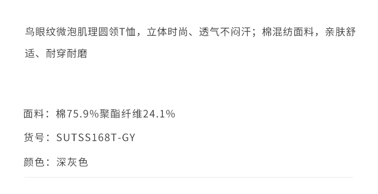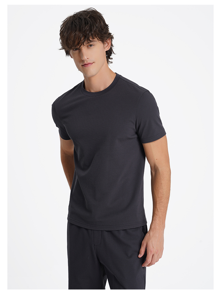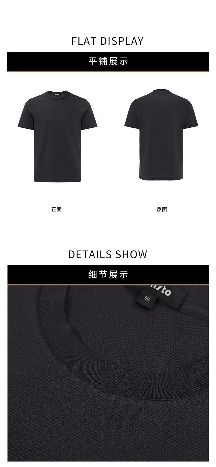callisto深灰色鸟眼纹微泡肌理圆领T恤