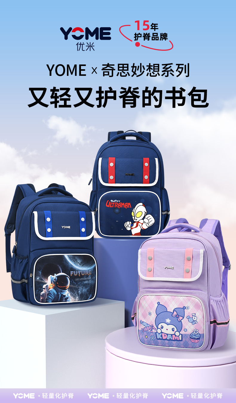 开学季福利!【赠送笔袋和补习袋】香港优米yome奥特曼书包小学生1-4年级男孩女生大容量护脊减负超轻便送补习袋