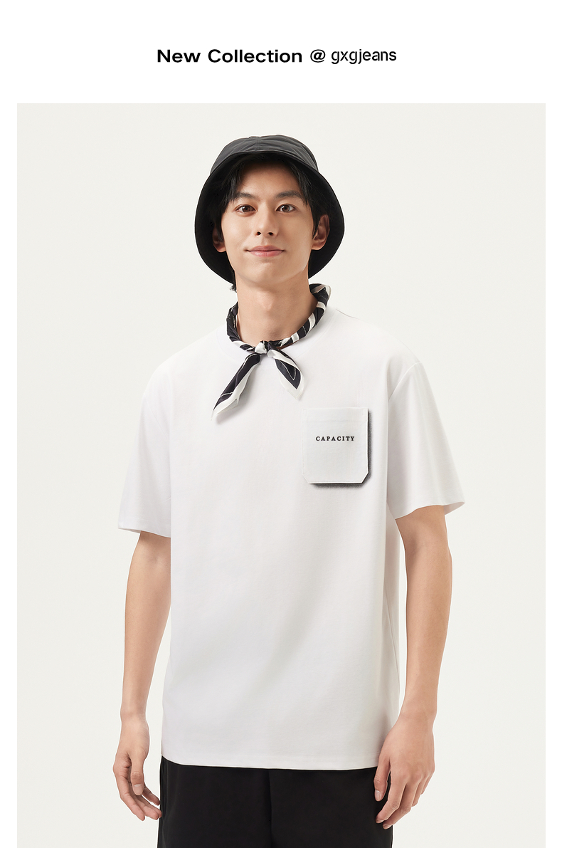 gxg.jeans男装 25年夏热卖圆领简约口袋个性印花男式T恤男短袖男