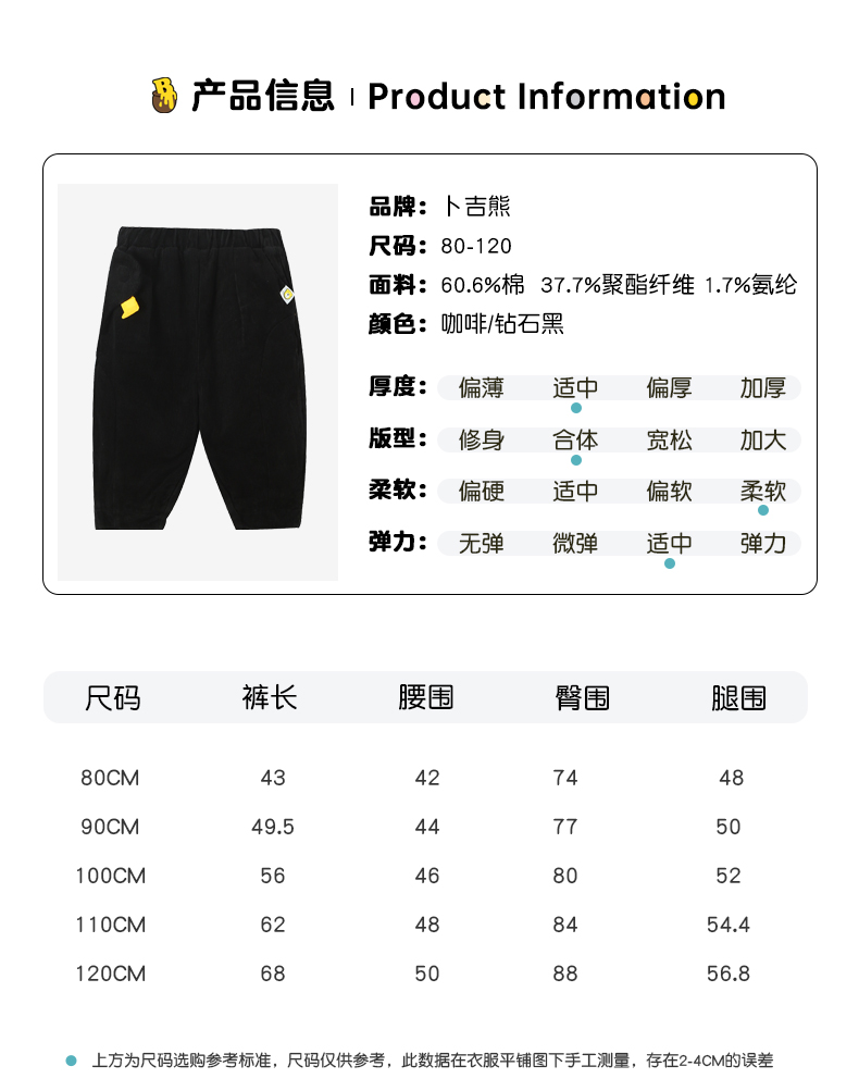BOOGIEBEAR卜吉熊童装冬季休闲长裤80-120 GF4255605
