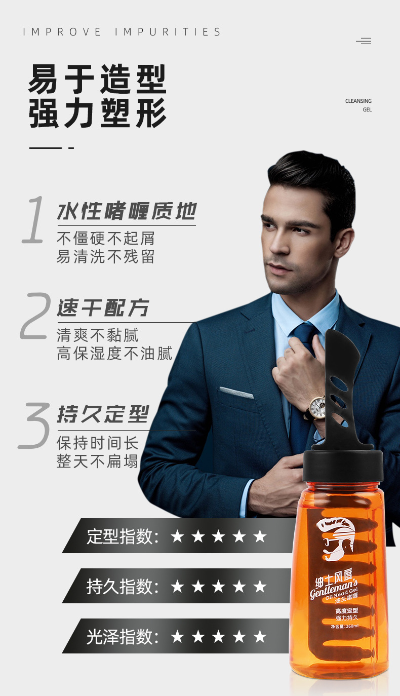 【一梳炫酷啫喱膏】男定型保湿背头油头膏头发造型者喱水美发护理