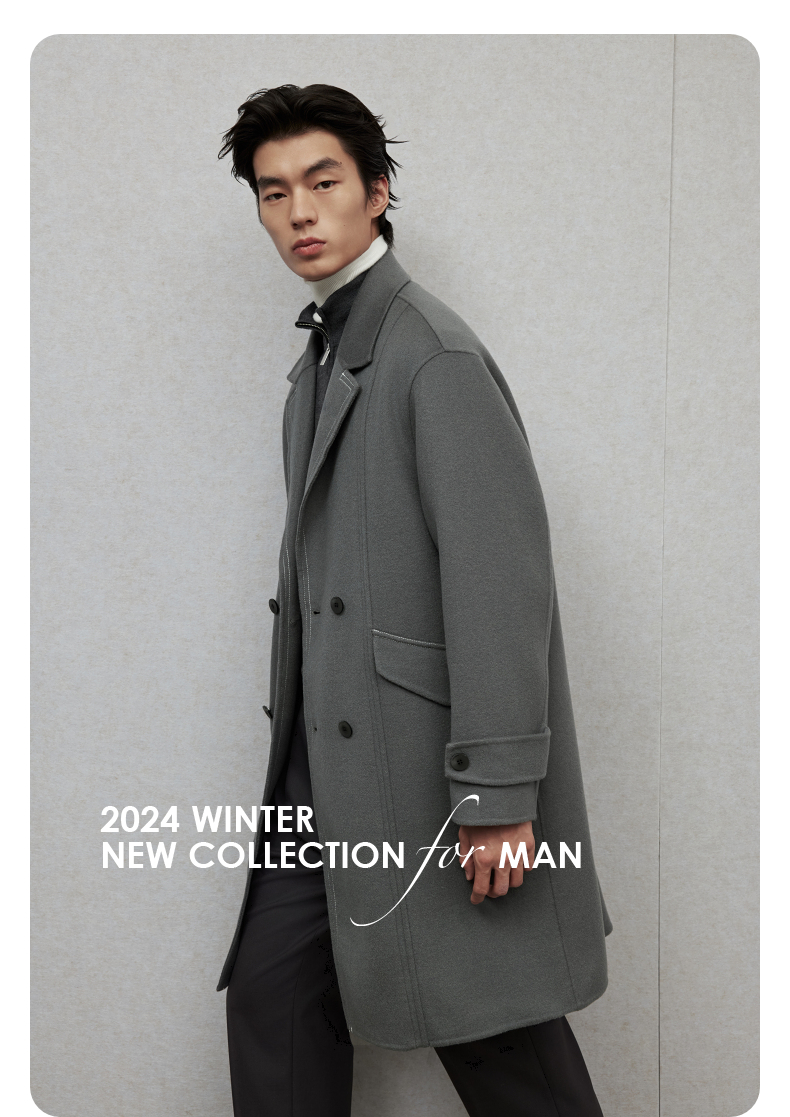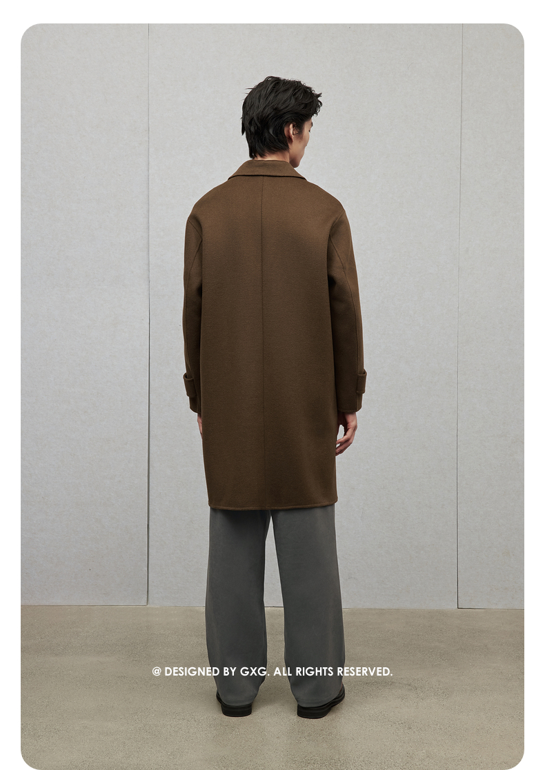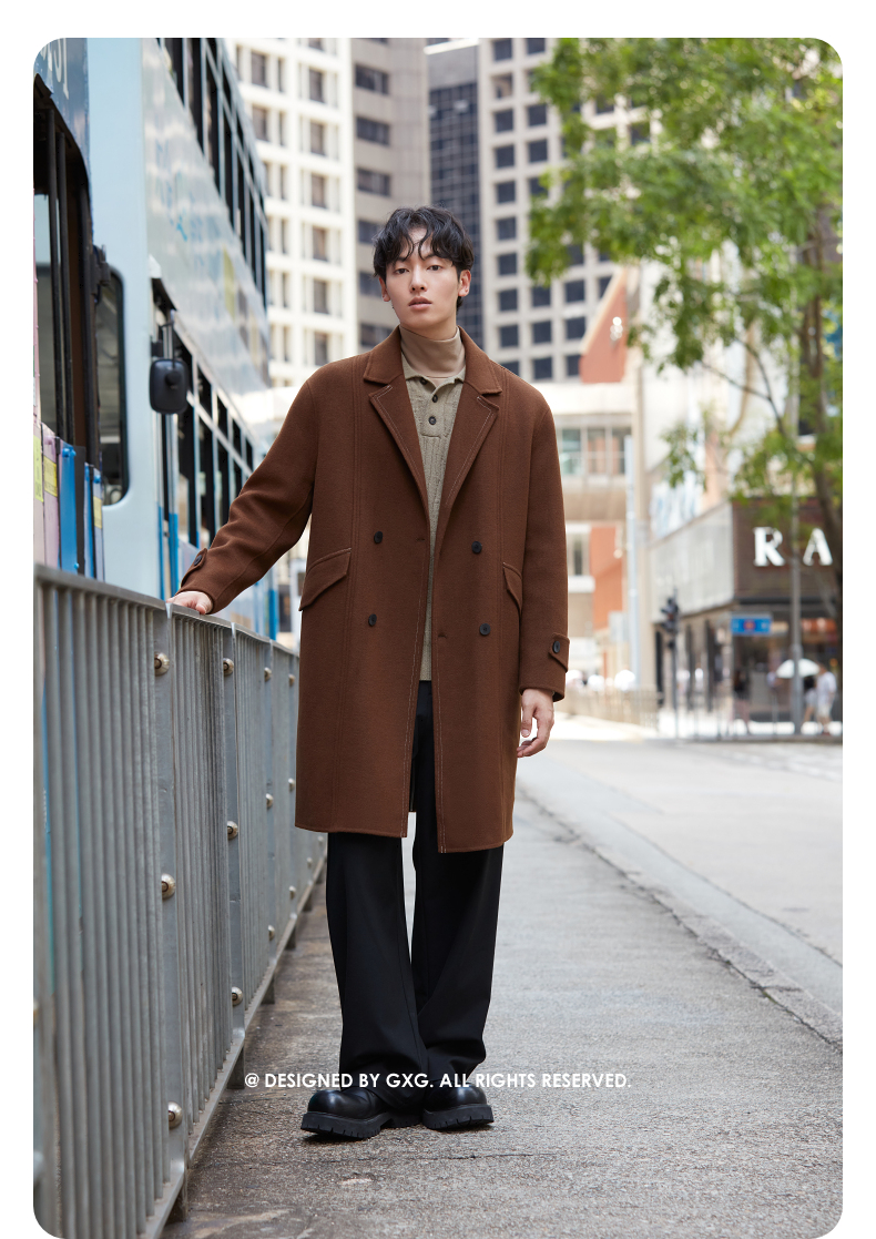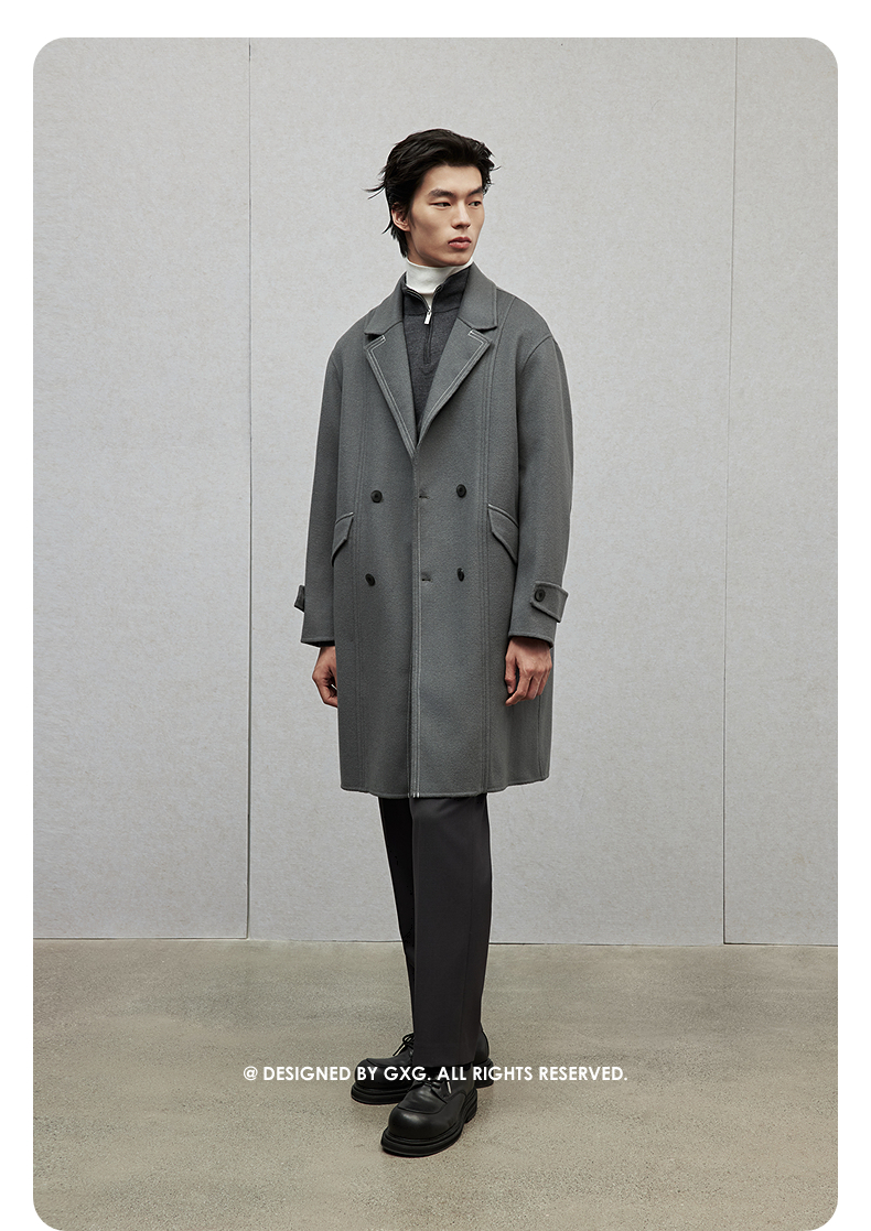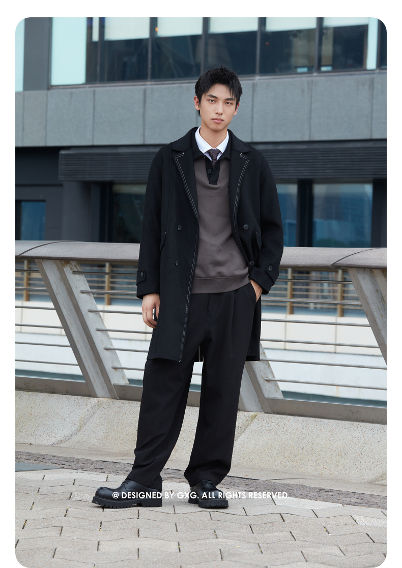 GXG男装 多色明线设计简约休闲平驳领长款大衣外套 2024年冬热卖