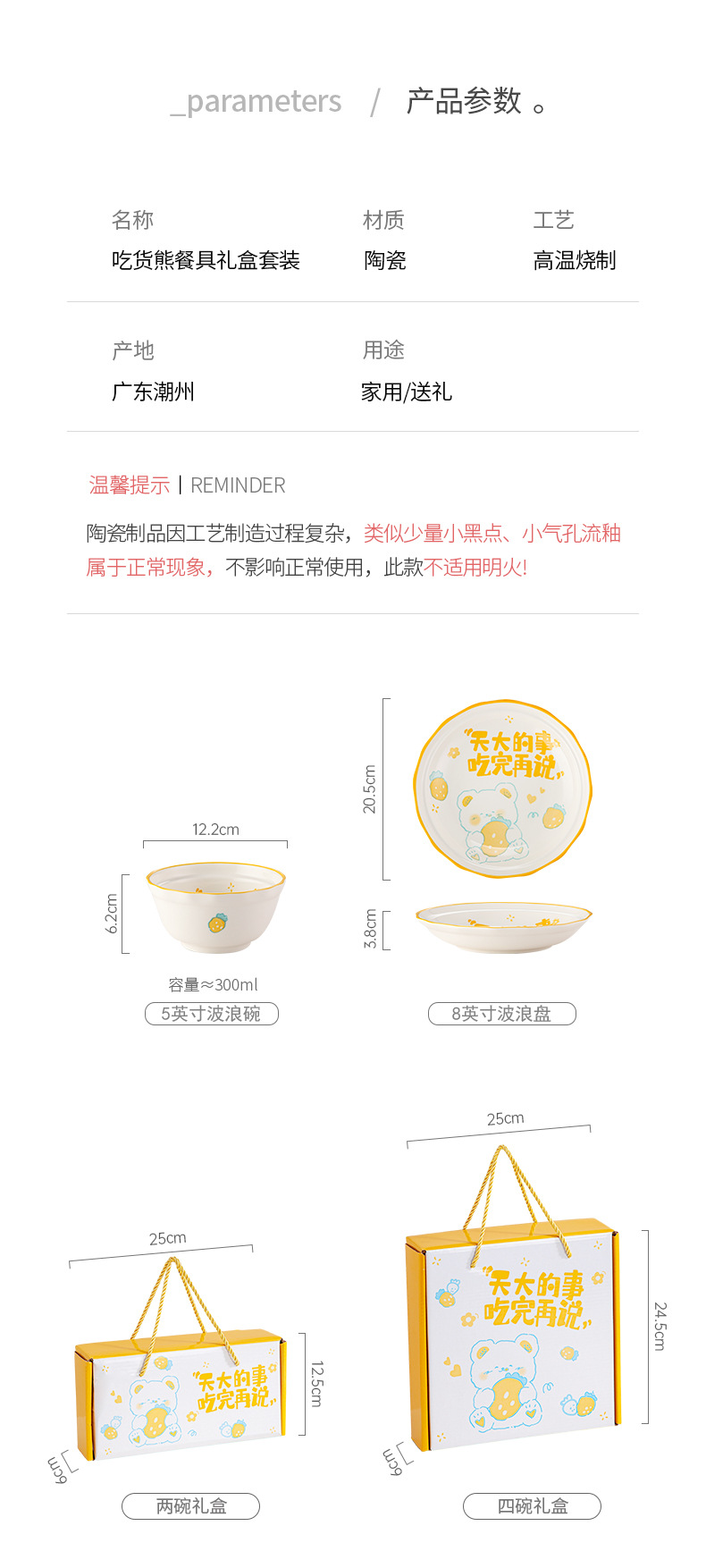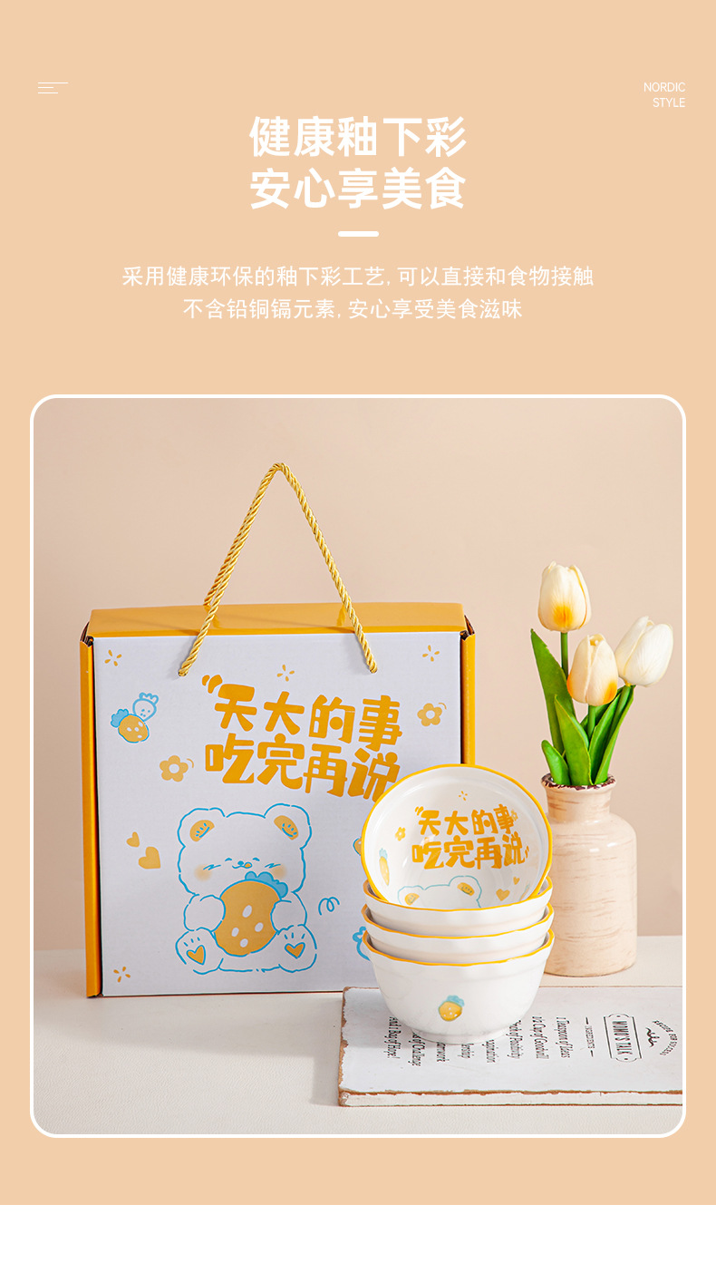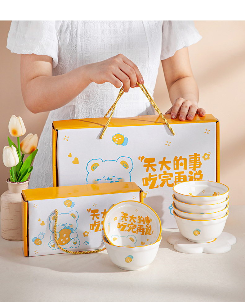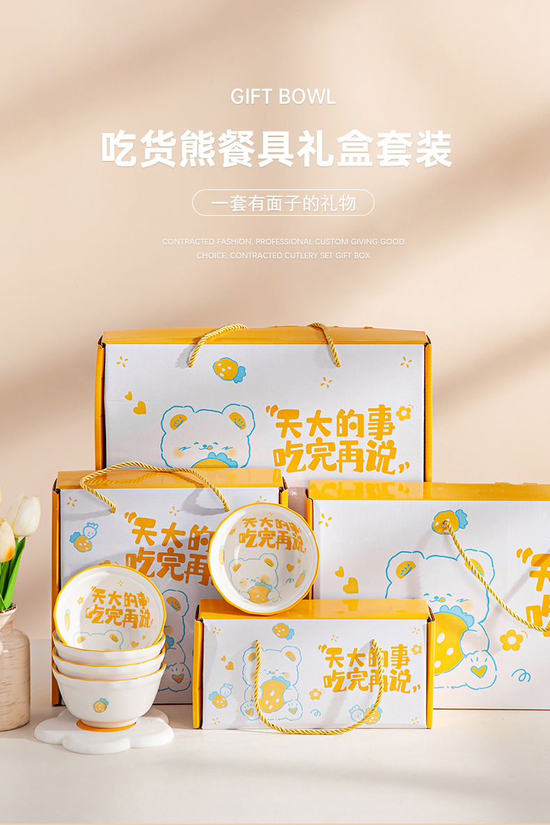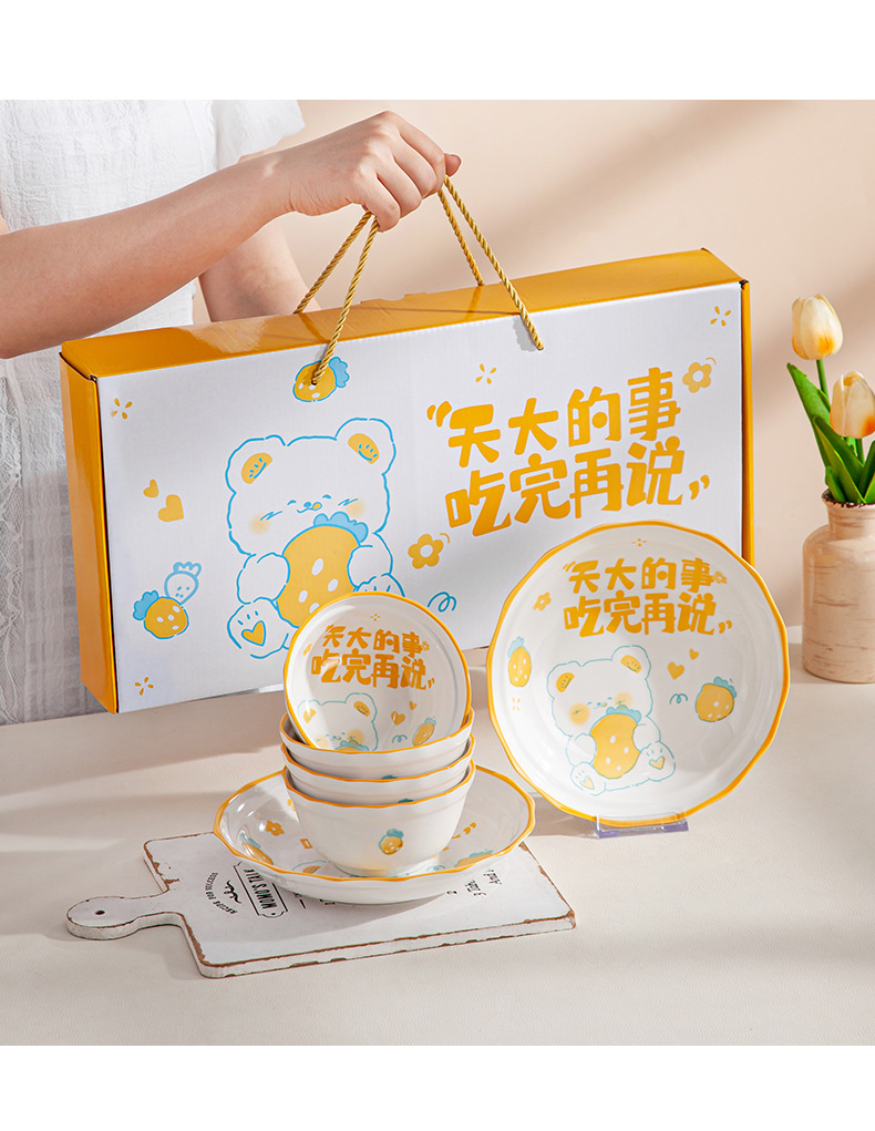 「礼盒装!三套可选」卡通可爱陶瓷餐具套装 礼品碗盘碟套装陶瓷碗伴手礼开业活动礼品装餐饮用具