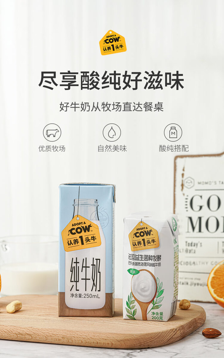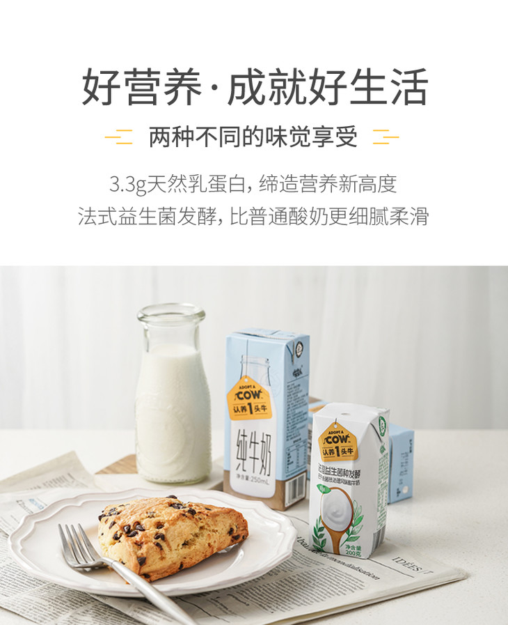 认养一头牛全脂纯牛奶整箱250ml*12法式原味常温酸奶200g*12