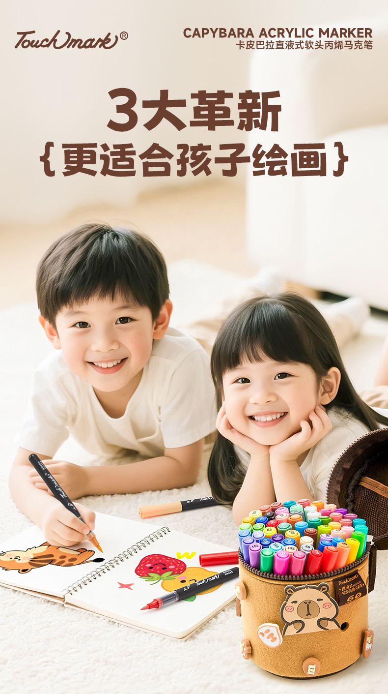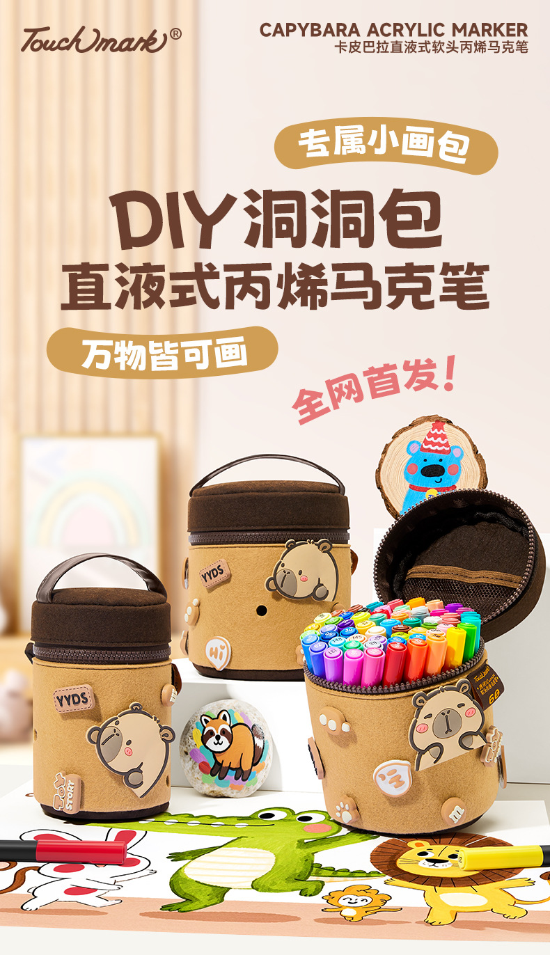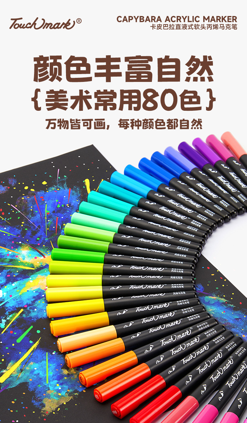 【万物皆可画 配专属小画包】Touchmark卡皮巴拉直液式丙烯马克笔80色 美术绘画不透色可叠色 水性墨可水洗 不透纸 多用一学期