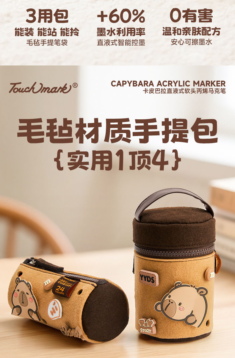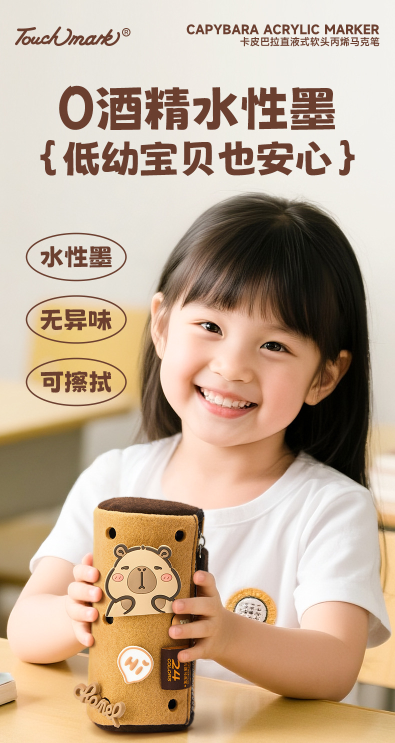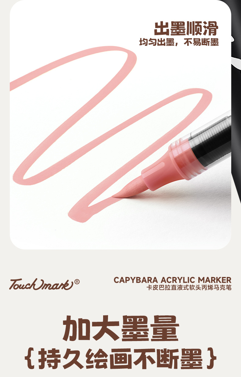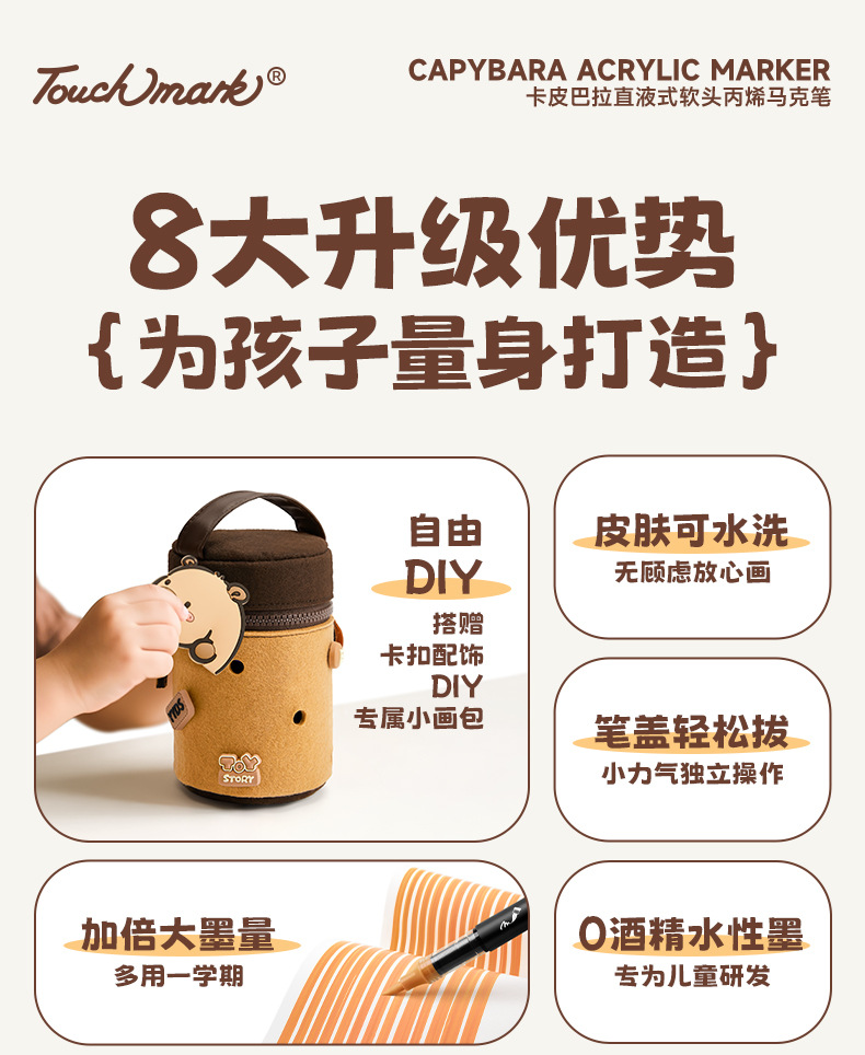 【万物皆可画 配专属小画包】Touchmark卡皮巴拉直液式丙烯马克笔80色 美术绘画不透色可叠色 水性墨可水洗 不透纸 多用一学期