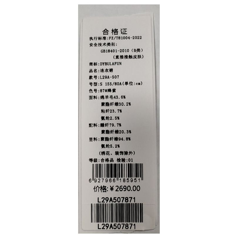 戴布拉芬连衣裙L29A507
