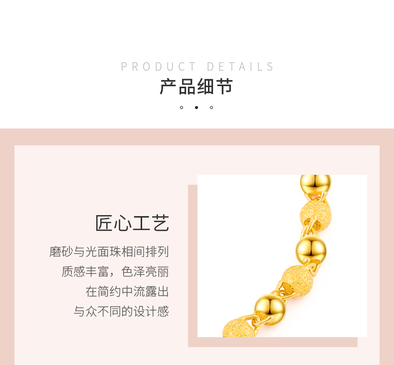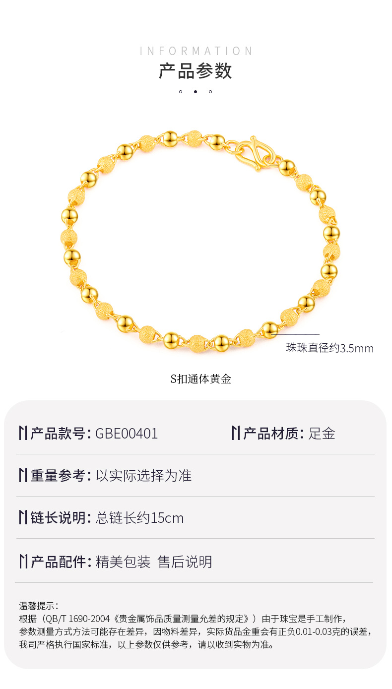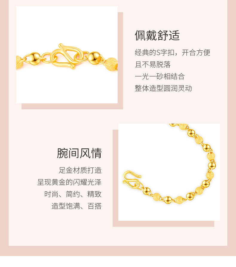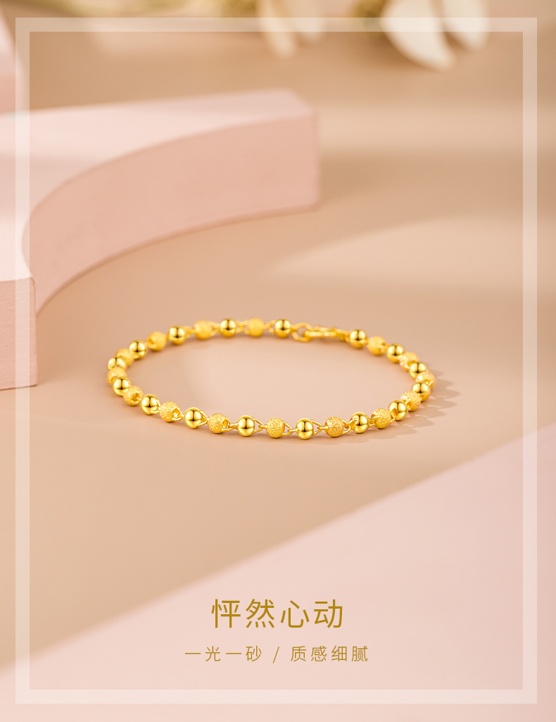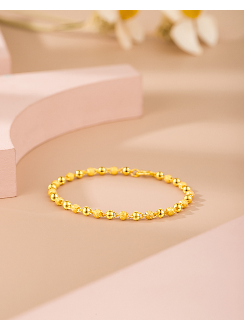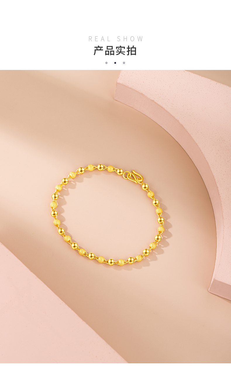 足金手链女光珠磨砂款黄金手链个性百搭手饰送女友【按克计价黄金1】MEMORA诗普琳GBE00401(线上专供)