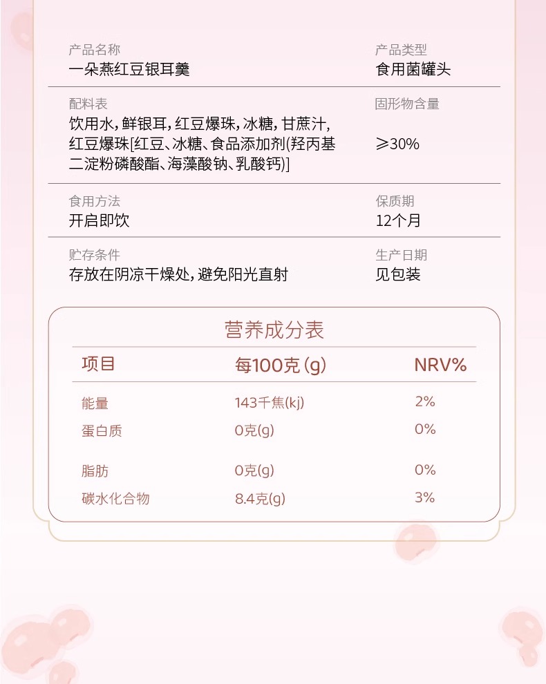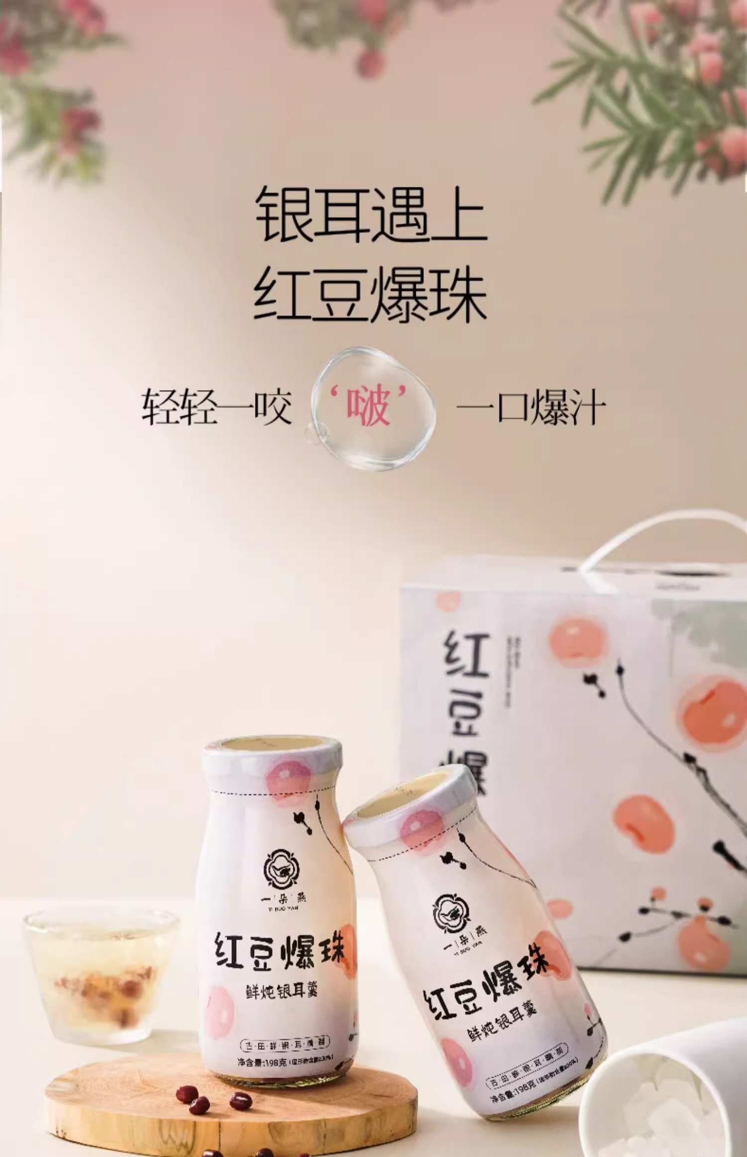 【秒杀】一朵燕鲜炖银耳羹礼盒1188克(红豆爆珠味)