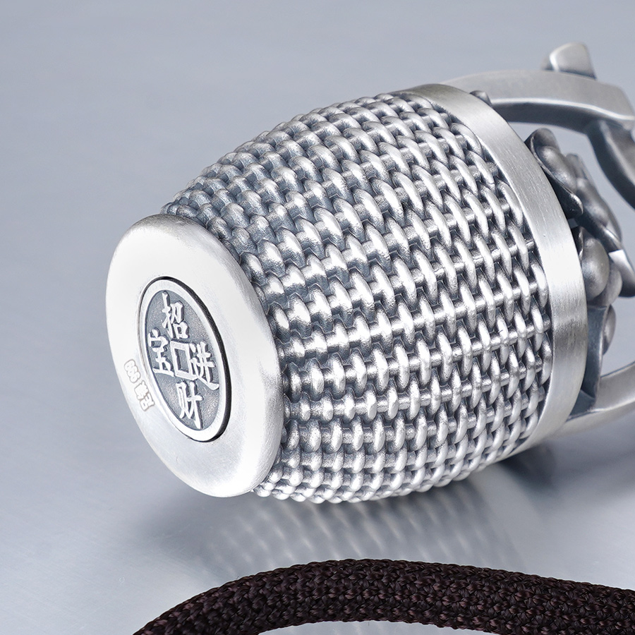 【规格】:大号一桶金约5.4*3.5*3,2cm,绳长约16cm,重约89.7g,底部招财进宝可转动