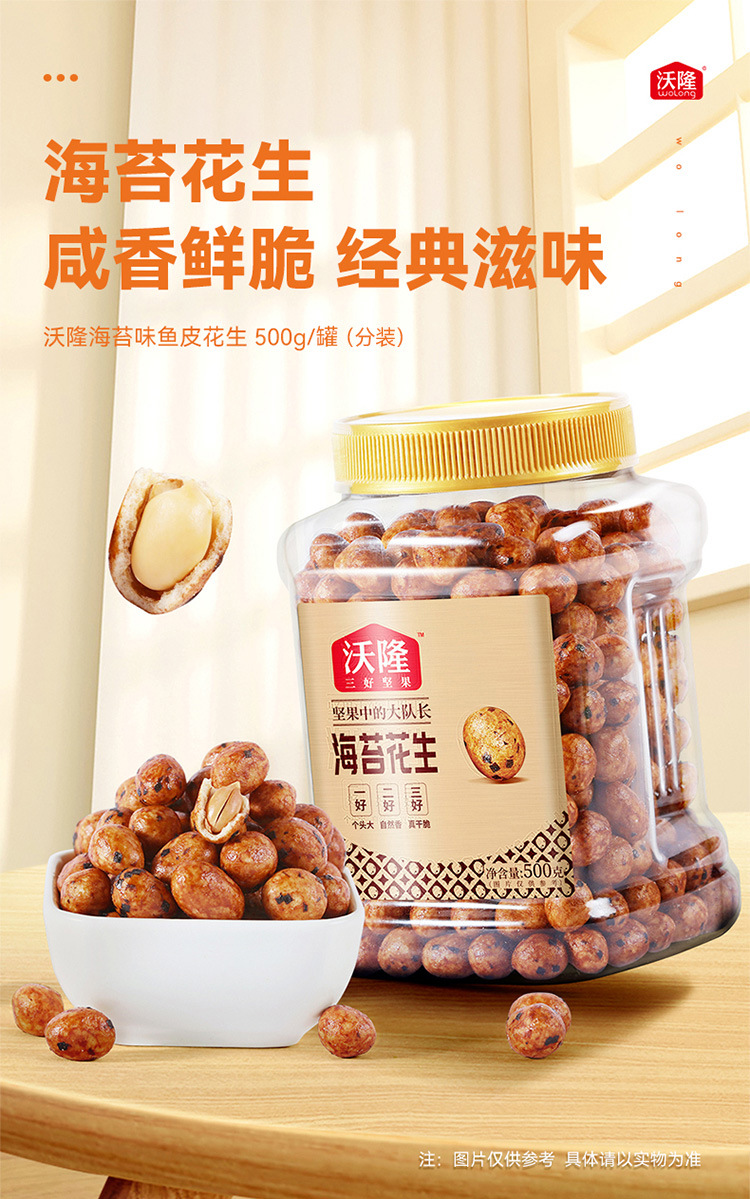 沃隆鱼皮花生480g|500g罐 两种规格随机发货 风味 坚果 零食 花生 海苔味 包邮
