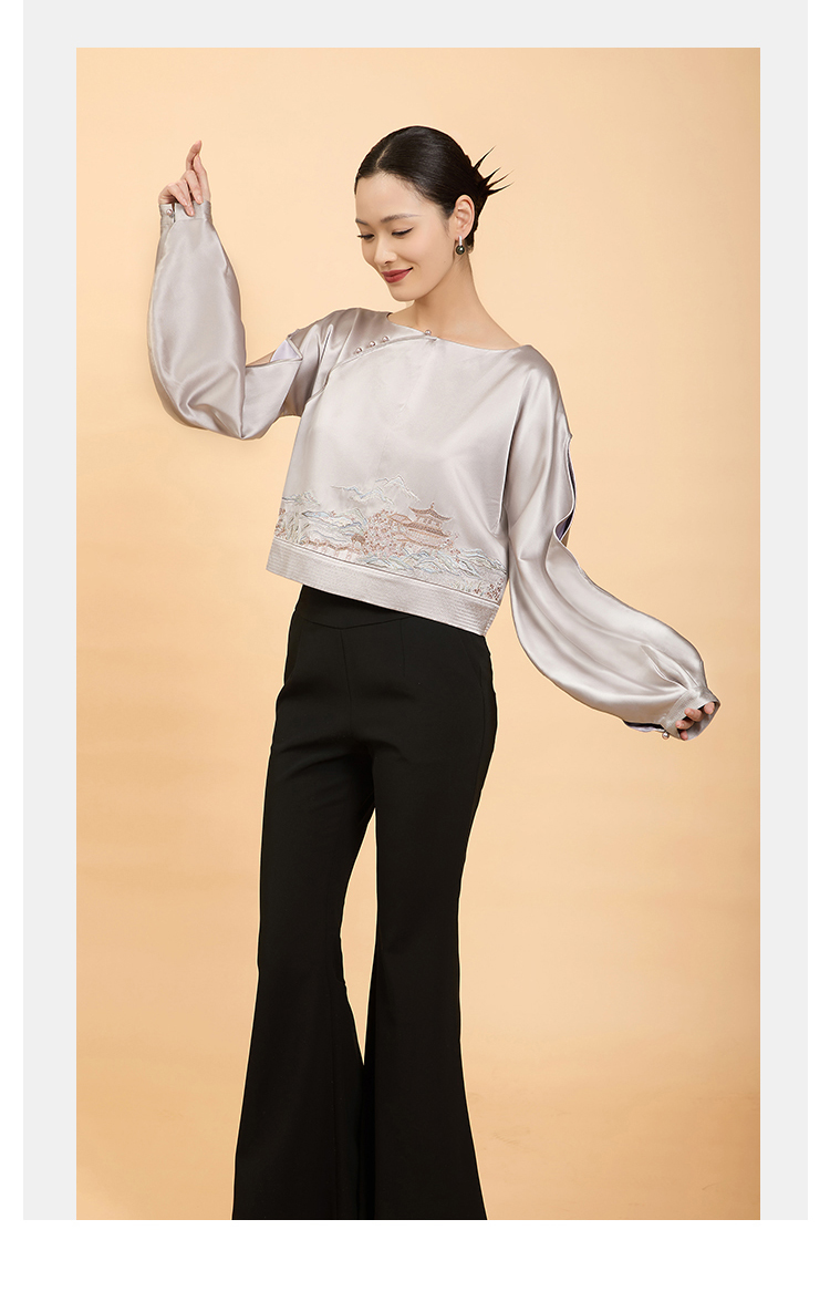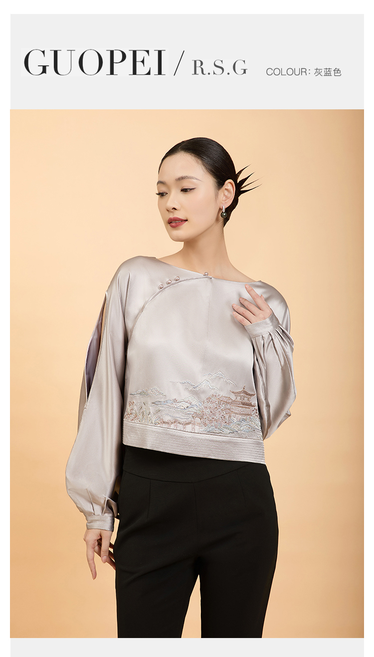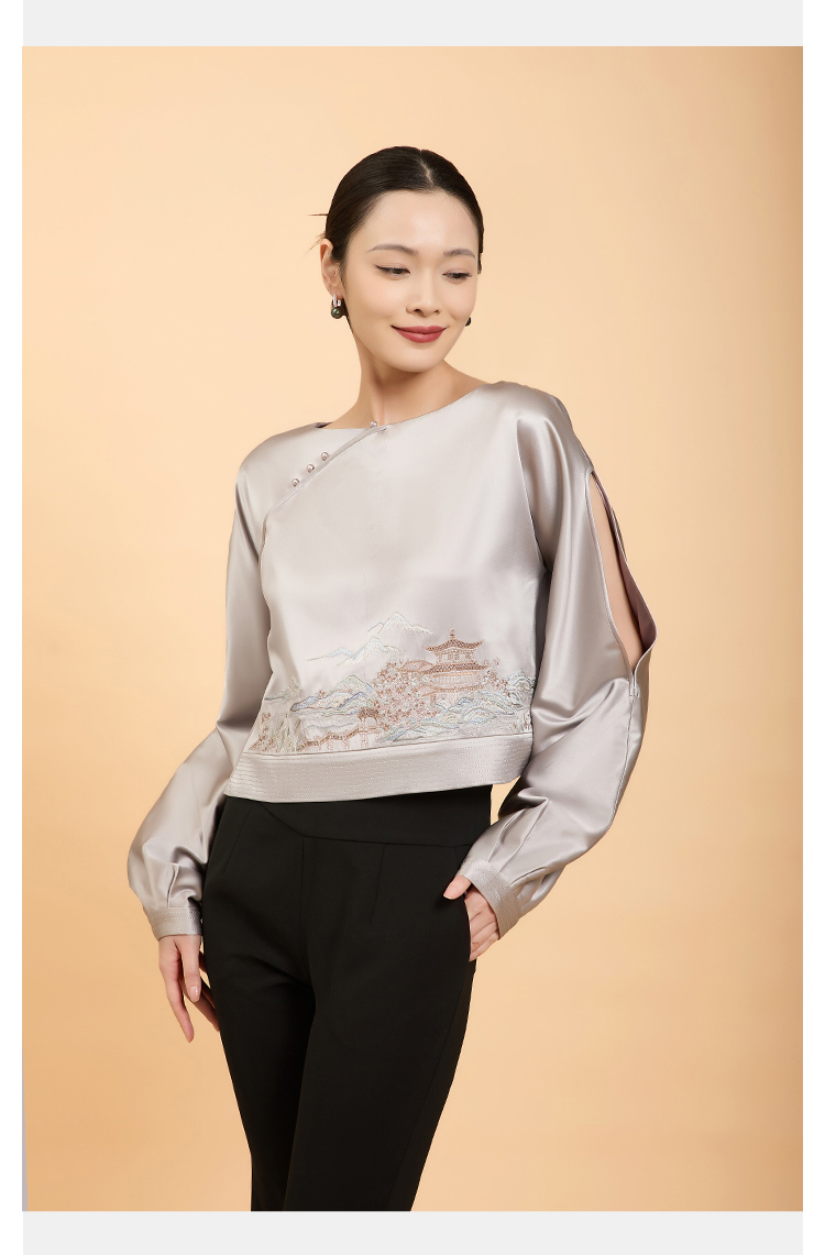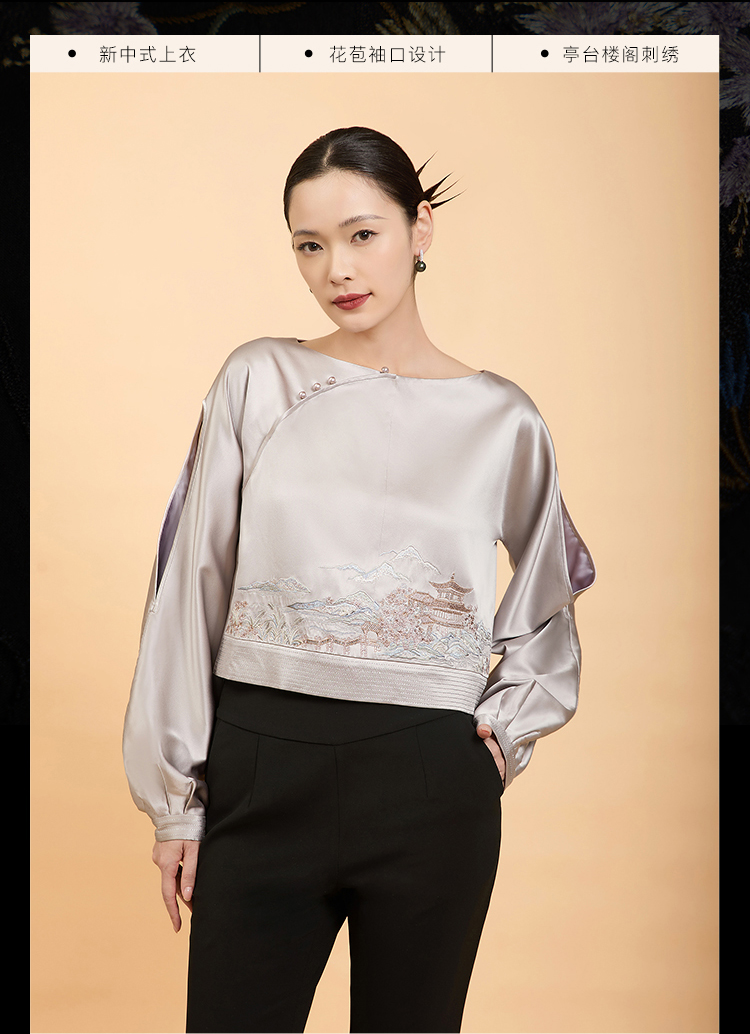 东方境X郭培联名系列:轻高定亭台楼阁刺绣短上衣