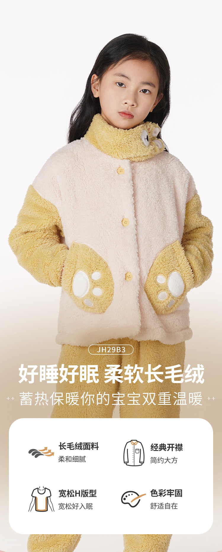 都市丽人眯雅佳好睡好眠童装法兰绒长袖长裤长毛绒厚家居服长袖睡衣JH29B3