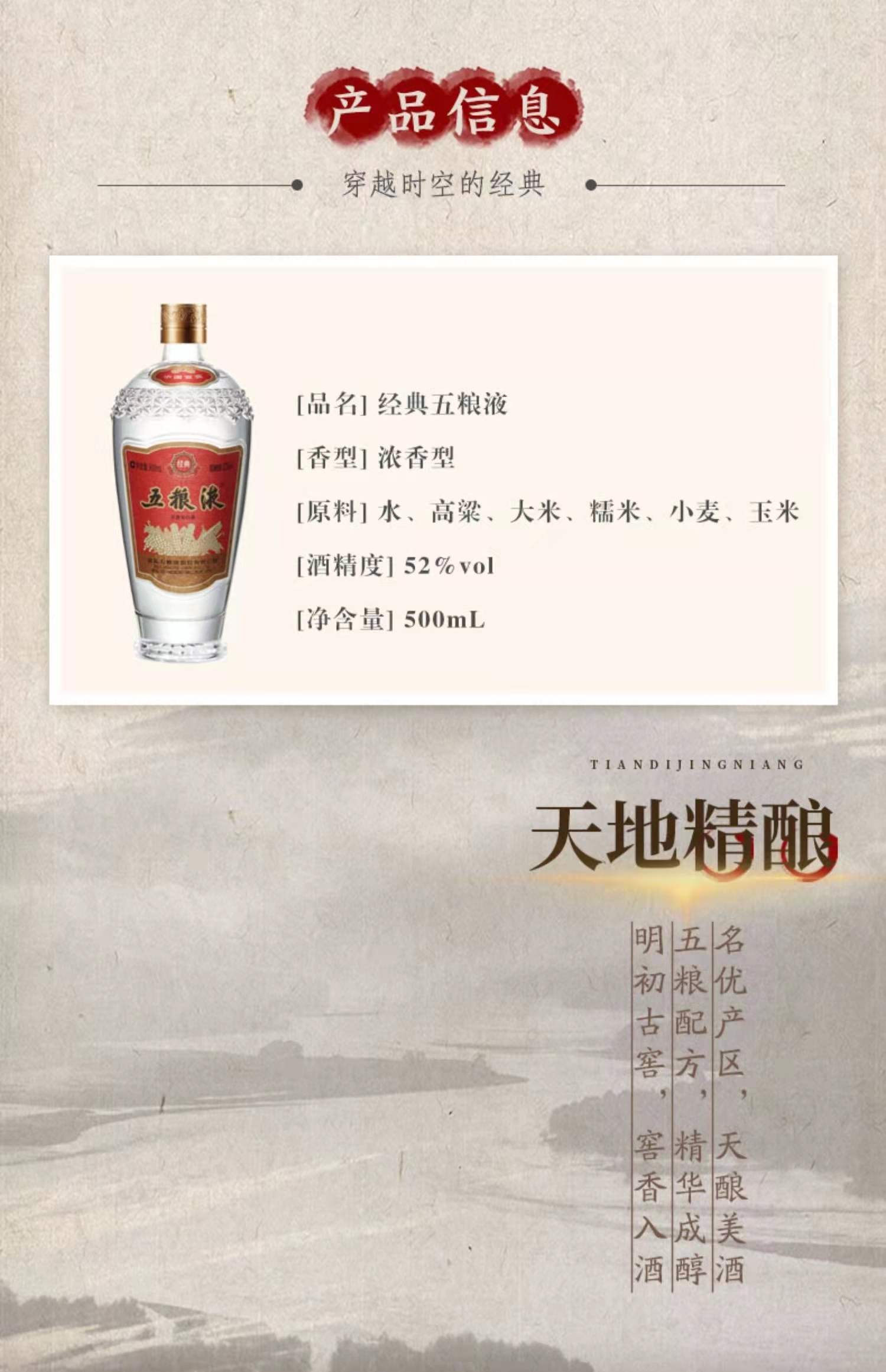 经典五粮液52度浓香型白酒整箱500ml*6瓶