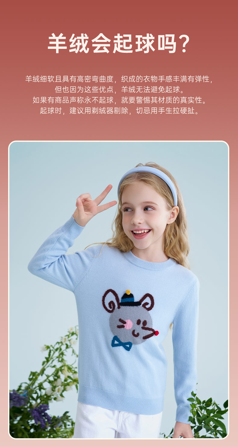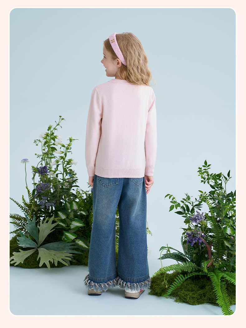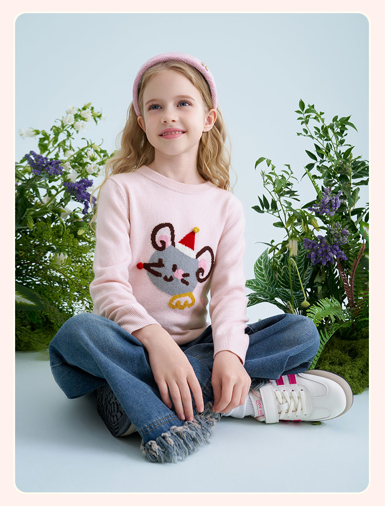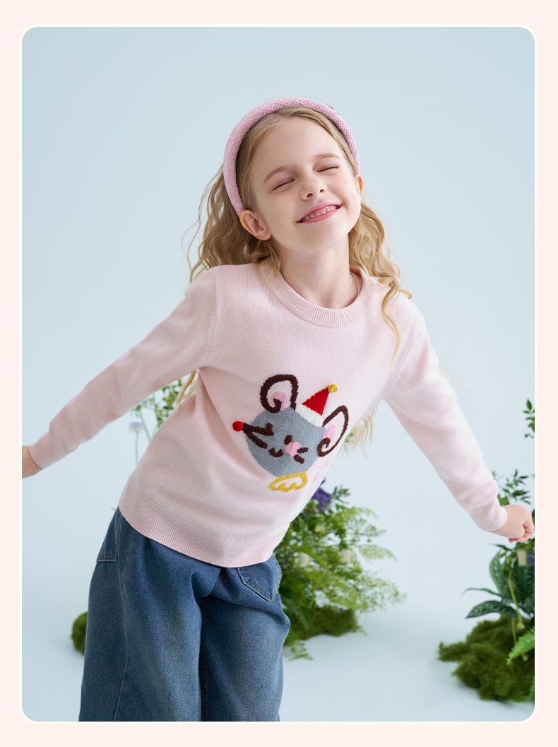 mettekids儿童100%羊绒衫2025春季新款女童粉色套头针织男童毛衣