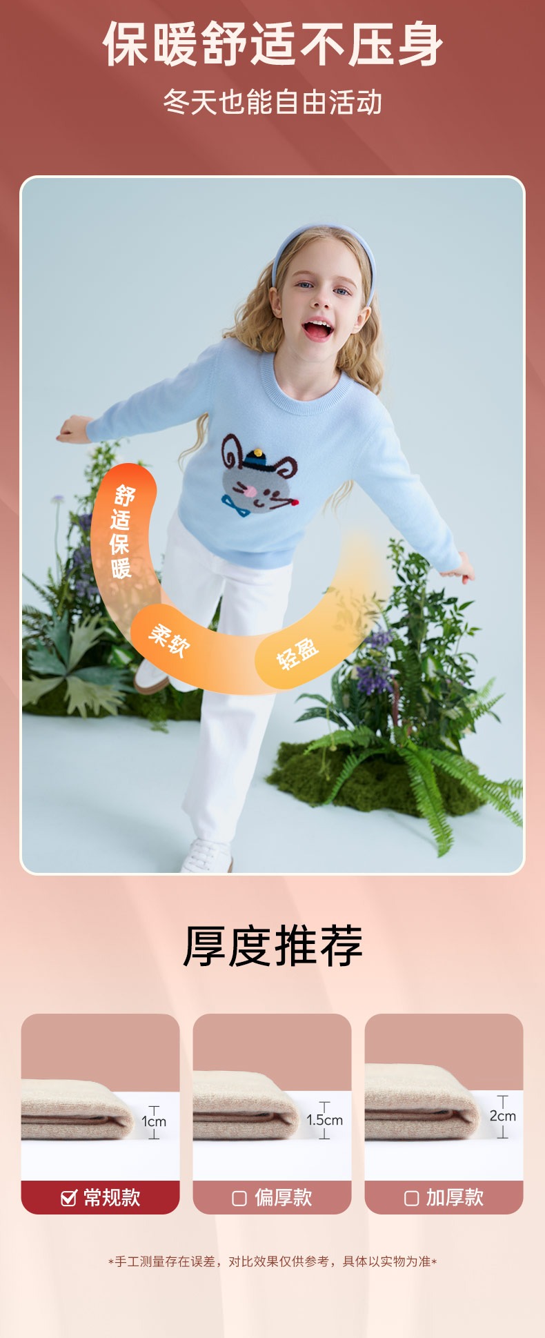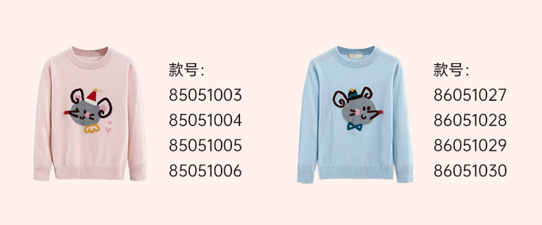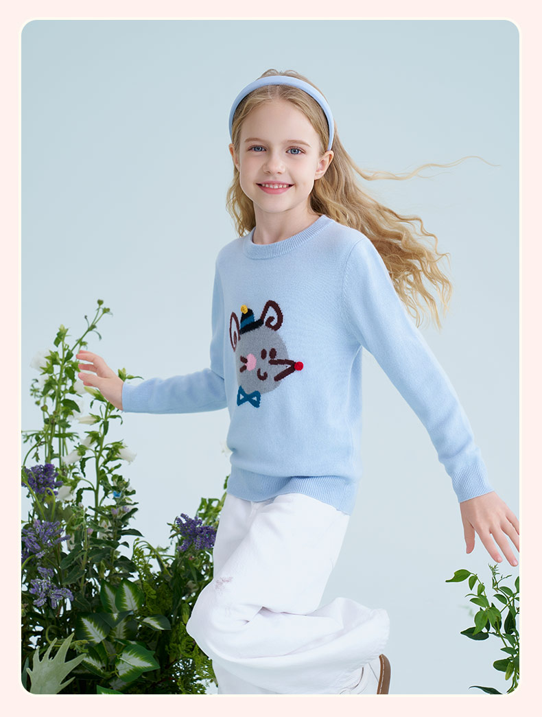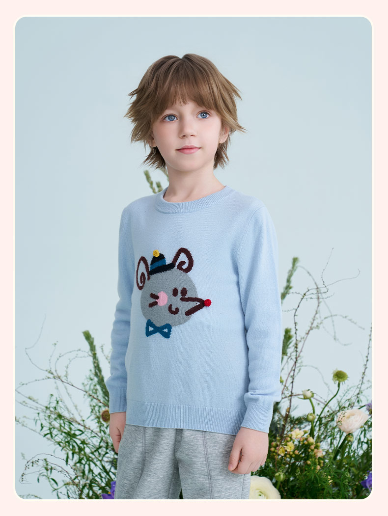mettekids儿童100%羊绒衫2025春季新款女童粉色套头针织男童毛衣