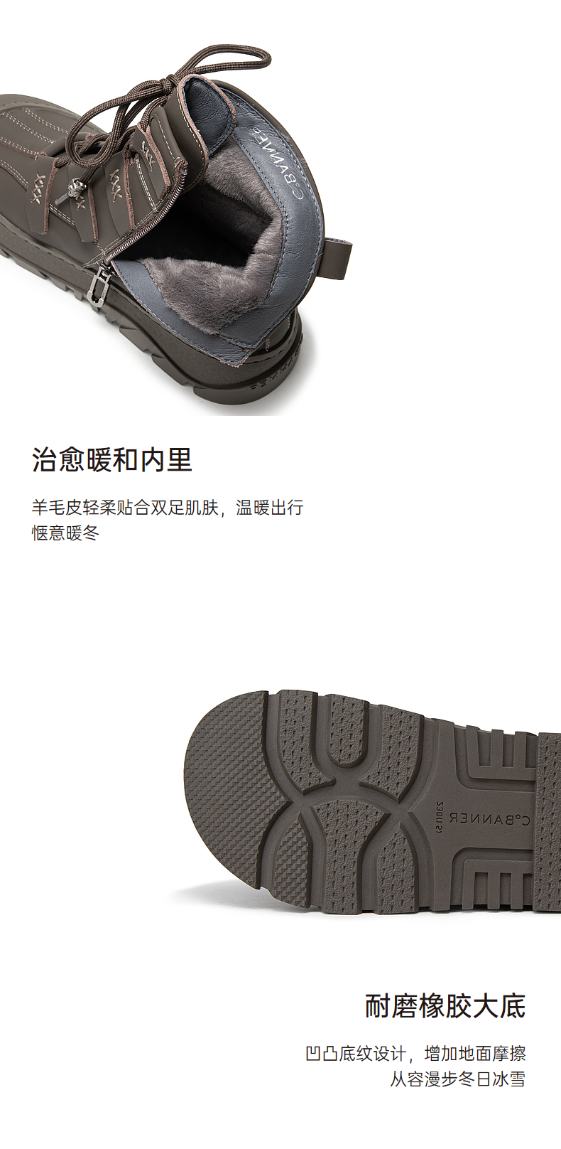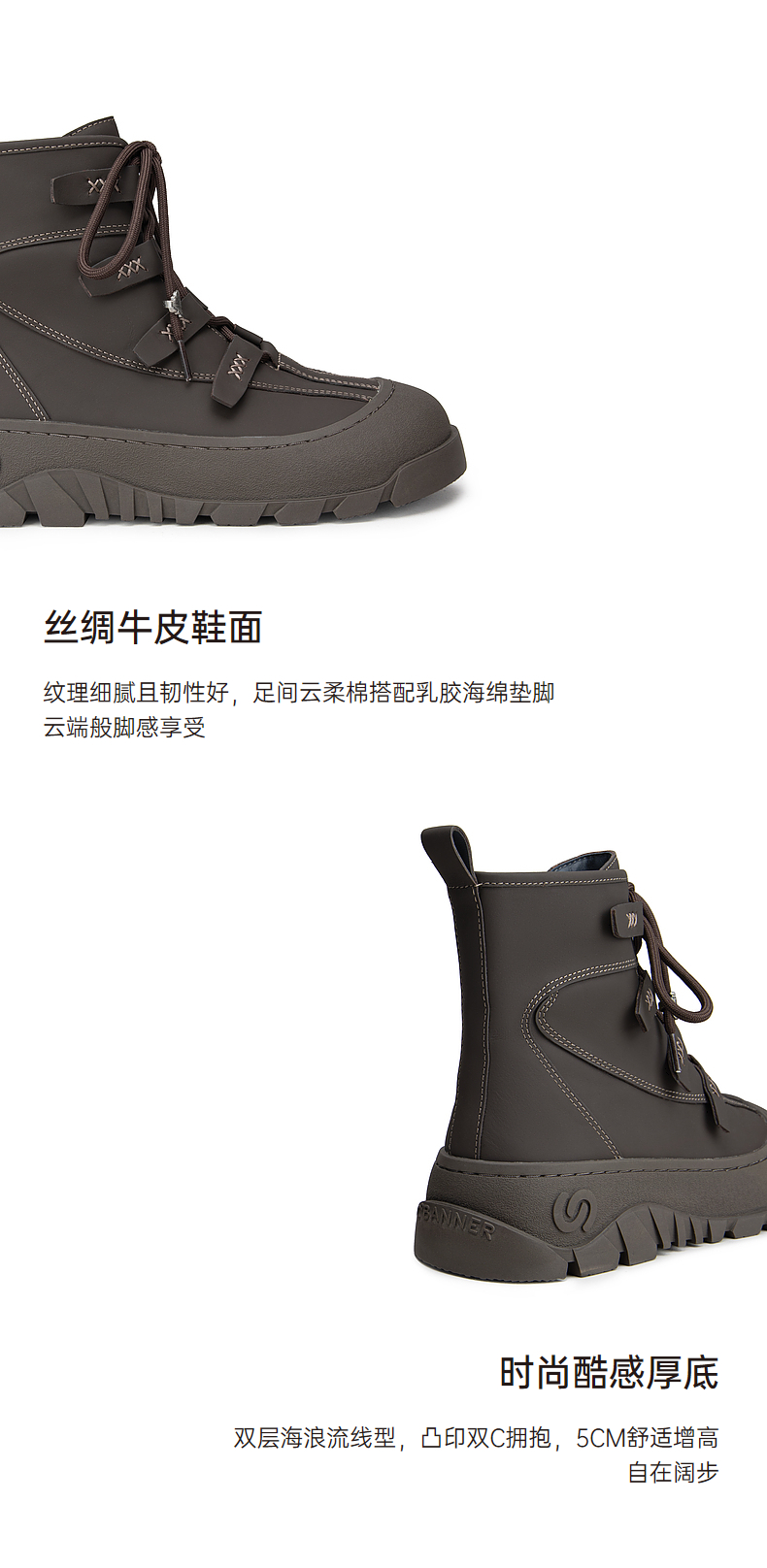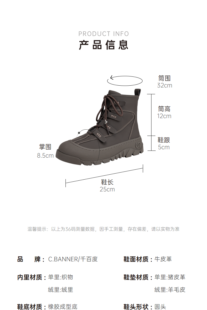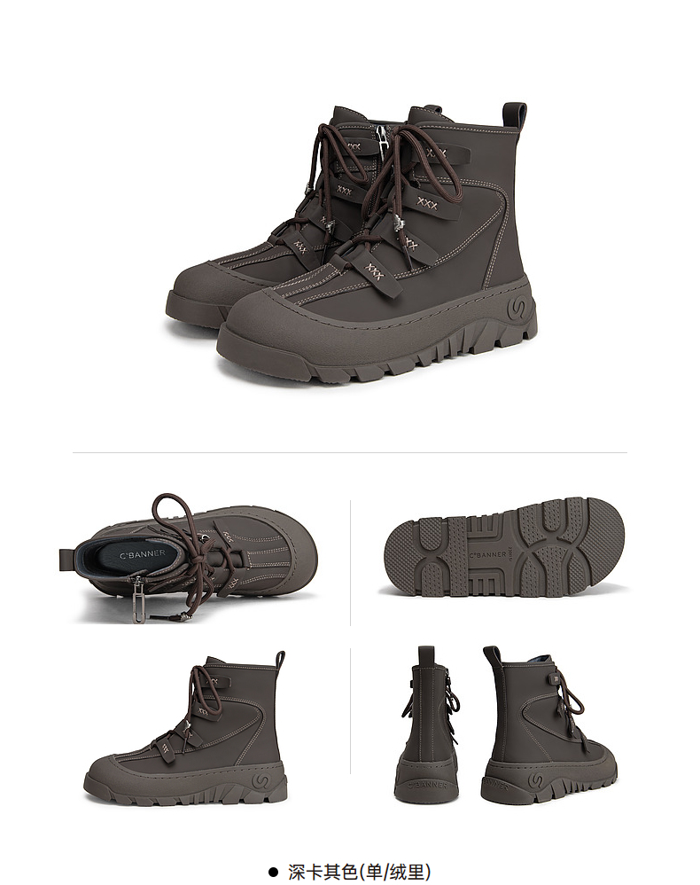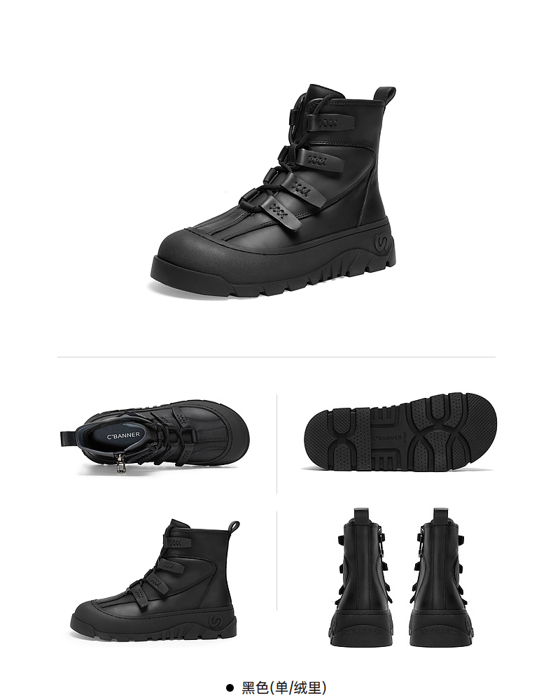 千百度厚底户外防滑雪地靴女款冬季增高保暖短靴A24583401