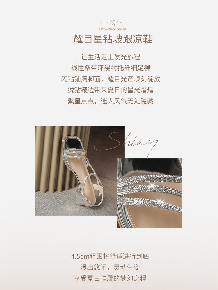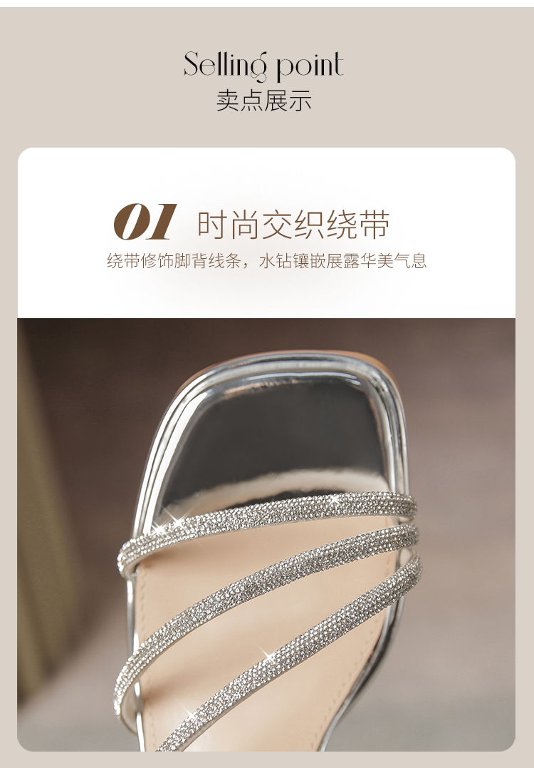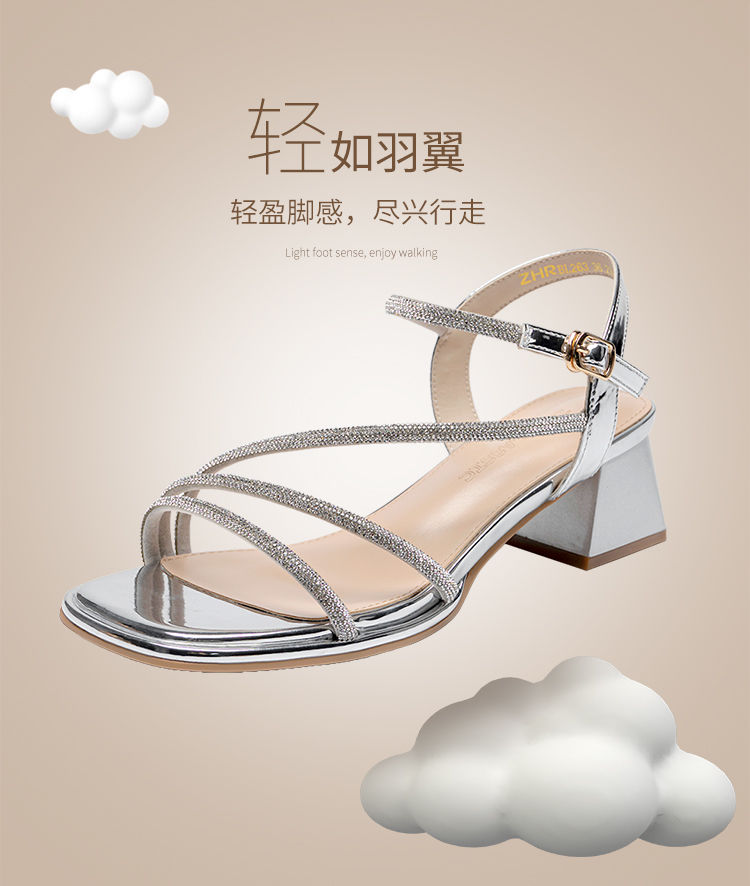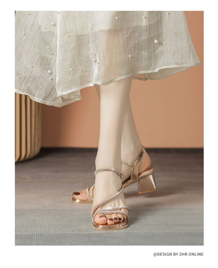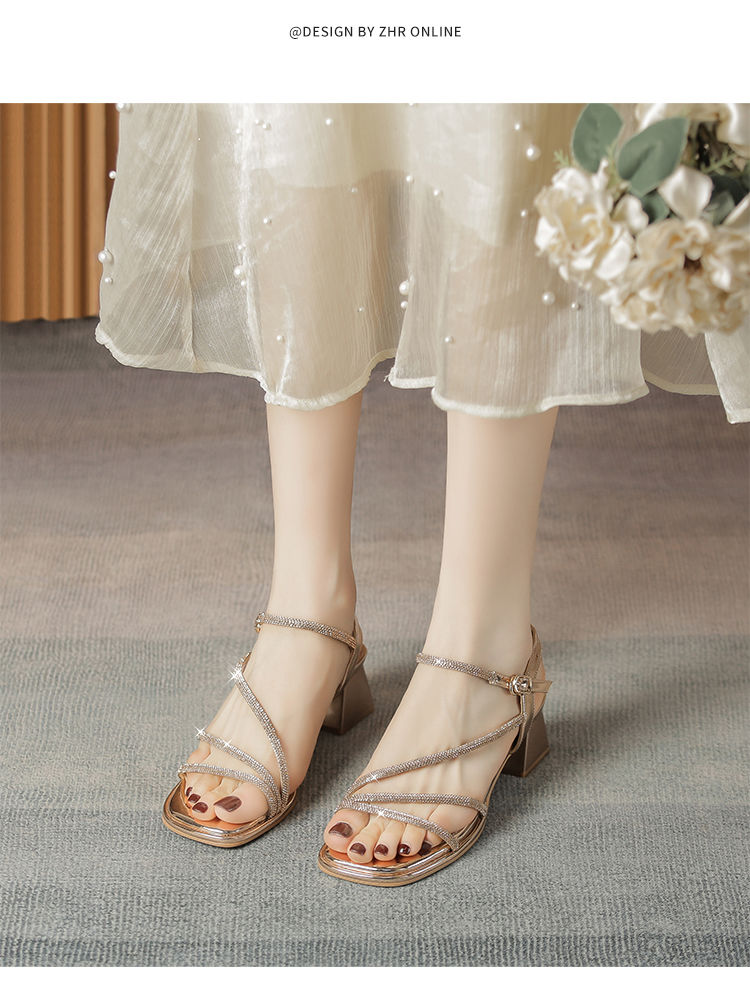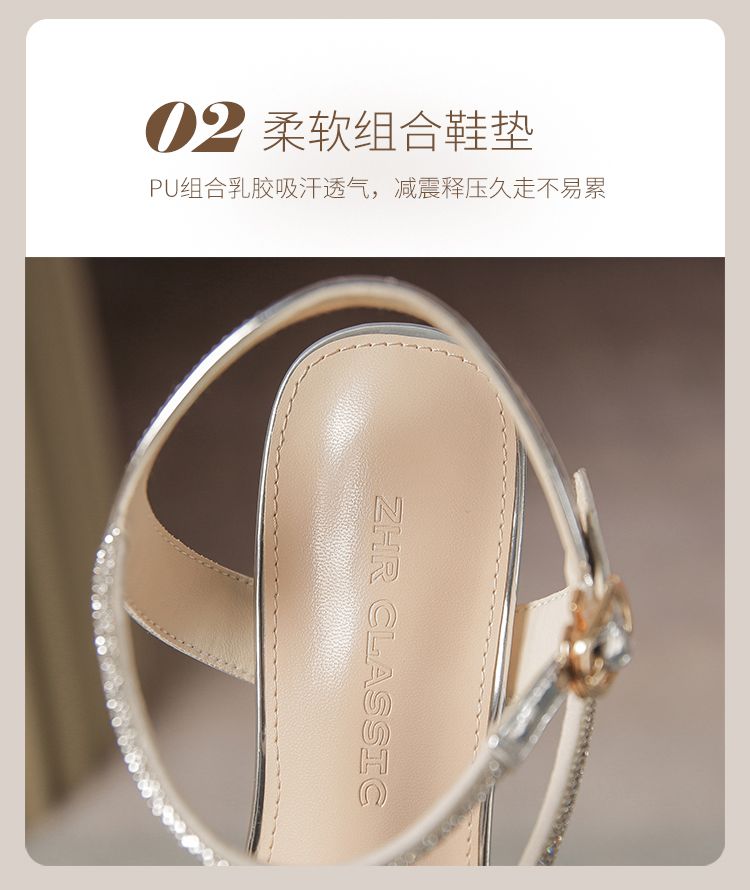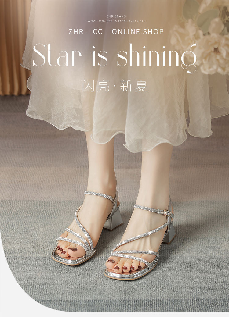 ZHR洋气超软水钻凉鞋女2024新款夏季一脚蹬粗跟两穿高跟鞋女外穿