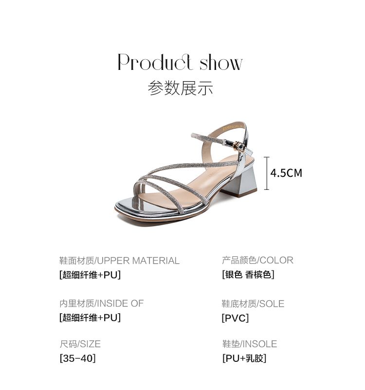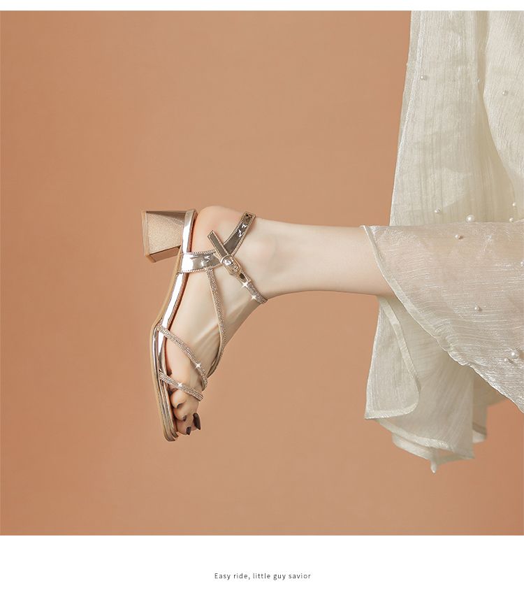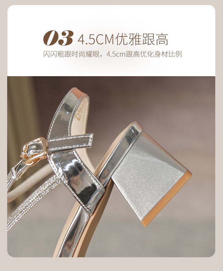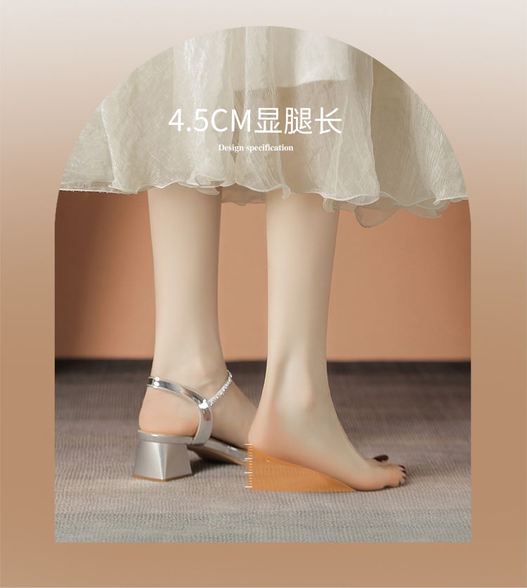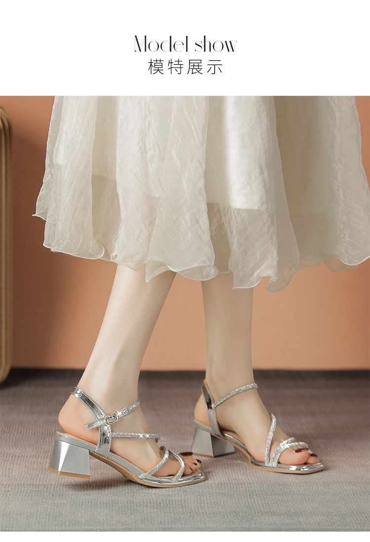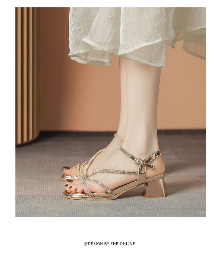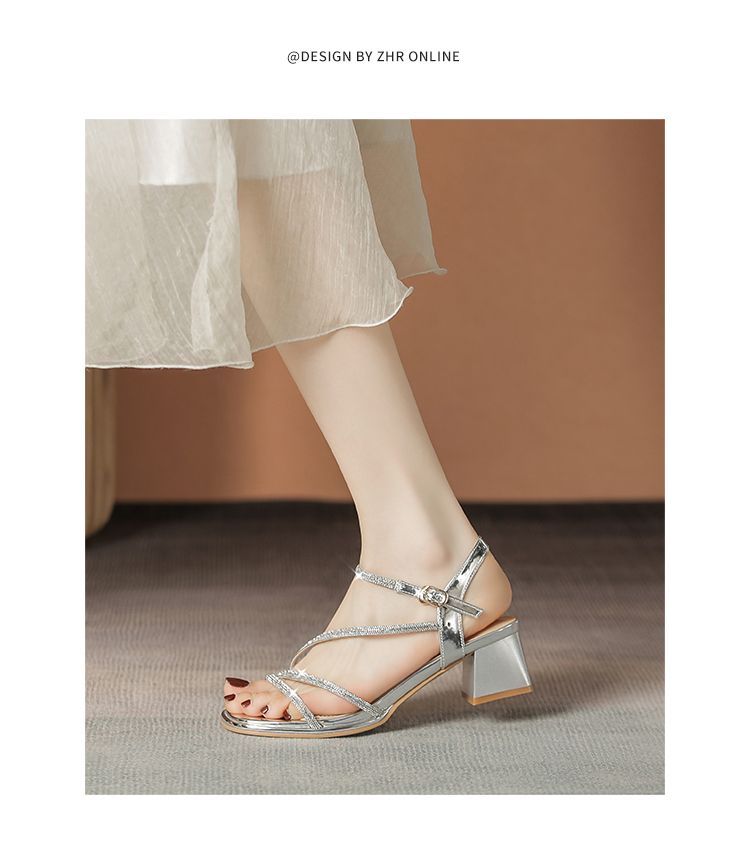 ZHR洋气超软水钻凉鞋女2024新款夏季一脚蹬粗跟两穿高跟鞋女外穿